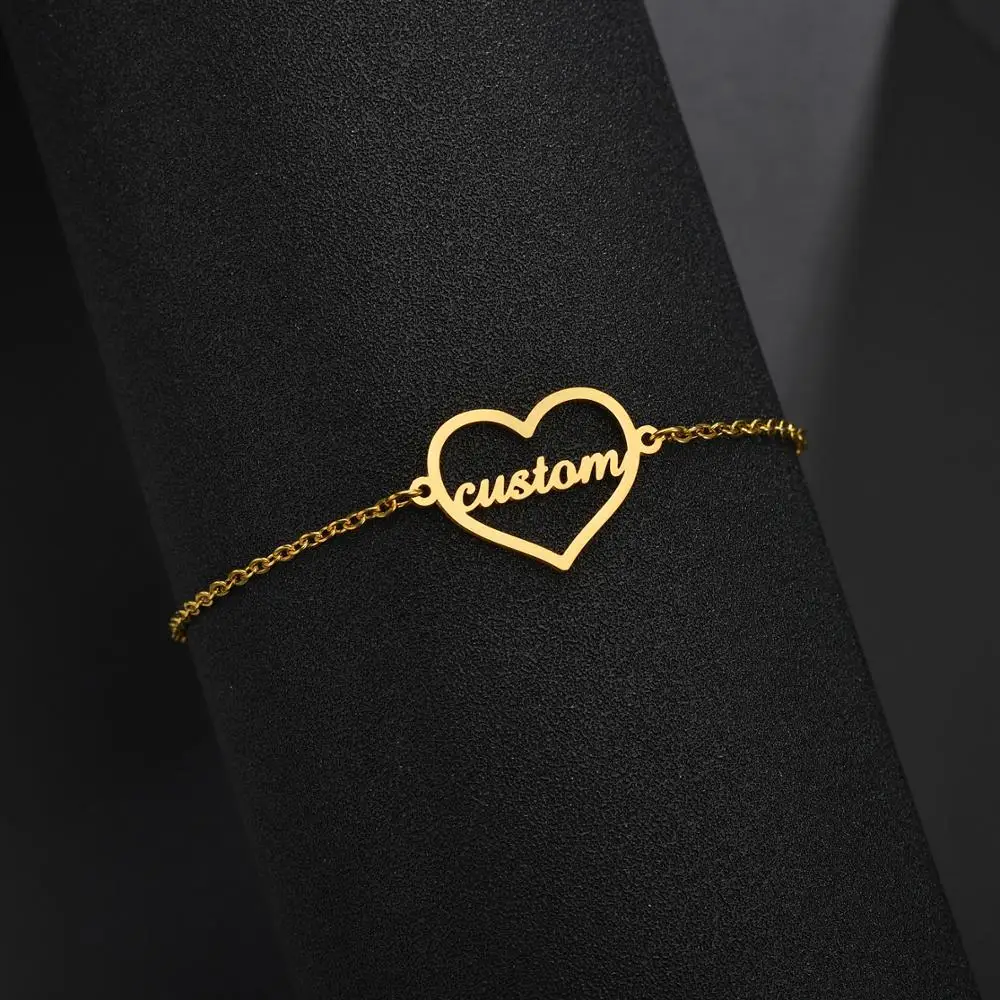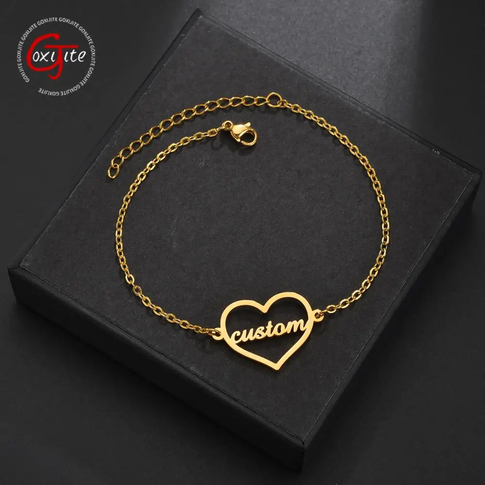 Имя:Браслет Goxijite с именем на заказ для женщин и девочек, браслет из нержавеющей стали с именем в виде сердца, подарок