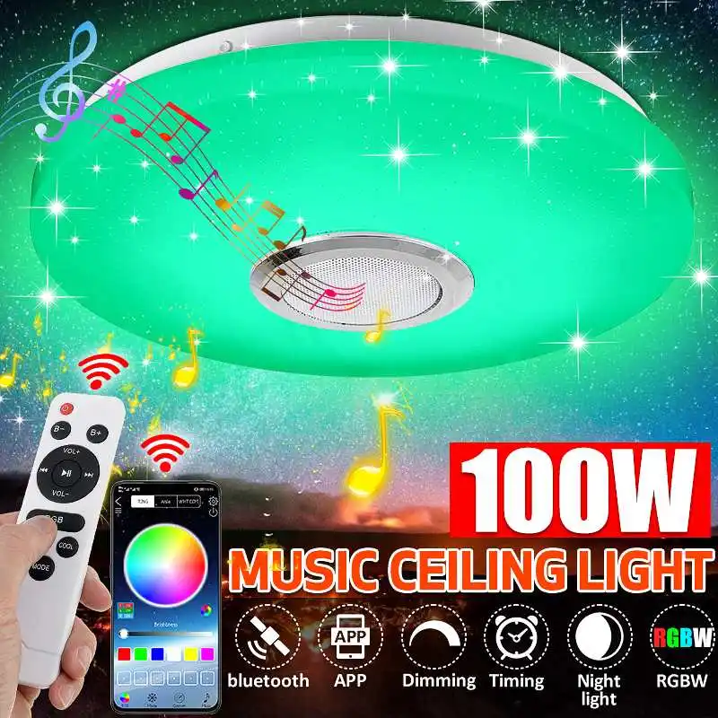 100W RGB с регулируемой яркостью музыка потолочный светильник удаленного и APP управление потолочные светильники AC180-265V для дома Колонка с беспроводным каналом блютус осветительный прибор