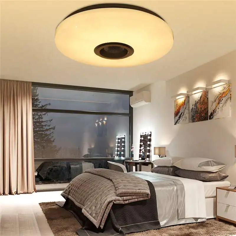 Особенности:Он оснащен мощным динамиком, который воспроизводит музыку через bluetooth-соединение со смартфона. С помощью специально разработанного приложения светильник со смартфона может управлять цветом и яркостью лампы.Мощные светодиоды RGBW могут воспроизводить все спектральные цвета, а также производить белый светильник различной интенсивности и цветовой температуры.По сравнению с обычными светильниками Светодиодный прожектор потребляет минимальное количество электроэнергии и даже ниже энергопотребления, чем энергосберегающие лампы.* Изготовлено из Высококачественная светодиодная микросхема, толстый акрил, который обеспечивает долгий срок службы, долговечный для использования.* Умное управление: светильник может управляться различными способами, такими как настенный выключатель, мобильное приложение и пульт дистанционного управления, что обеспечивает более удобство управления.* Мульти-Режим работы: он имеет много режимов, белый светильник, теплый светильник, нейтральный светильник, прочный светильник, режимы сцены, такие как музыкальный ритм, градиент, красочный светильник с подсветкой, чтобы удовлетворить ваши различные потребности гибко, очень практично для вашей повседневной жизни.* Мобильное приложение и bluetooth могут регулировать яркость, менять цвет, пульт дистанционного управления может включать и выключать светильник, регулировать яркость и цвет, воспроизводить песни, регулировать громкость, это такой умный потолочный светильник, который изменит вашу концепцию на потолочный светильник, Это как верный компаньон, который позаботится о вашем настроении.* Энергосбережение: с ярким источником высокой мощности Светодиодный светильник, экономия большой мощности по сравнению с тем же уровнем яркости нормальный светильник, который не применяется светодиодный чип, экологически чистый.* Умное управление: это приложение доступно для устройств Apple Iphone, Ipad и Android.Характеристики:Регулировка яркости: Да