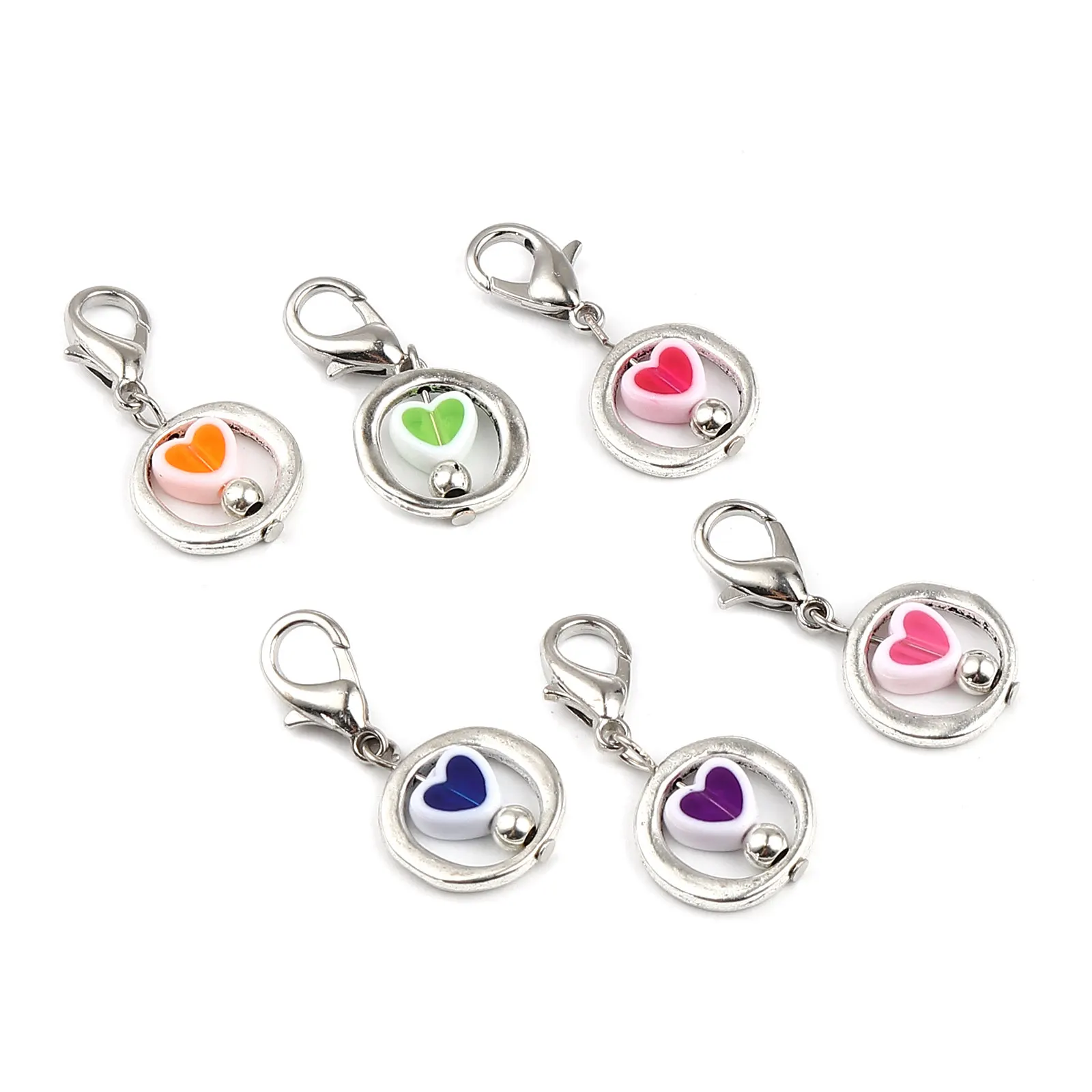 Маркеры для вязания, Круглые, перламутровые, серебристые, из сплава цинка и акрила, случайные цвета, 12 шт.
