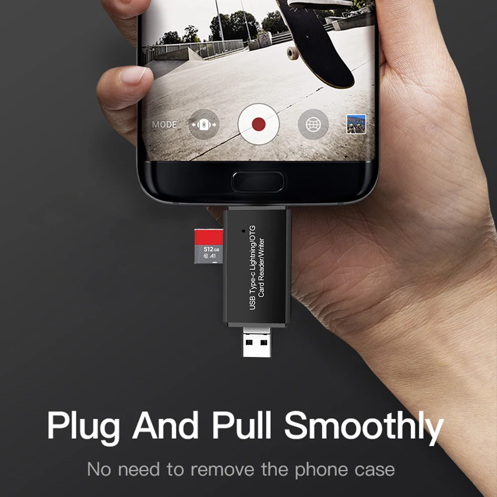 4 в 1 USB OTG телефонный адаптер Многофункциональный кардридер SD TF Type-C USB Micro 8 Pin Dongle для iPhone Android мобильных телефонов