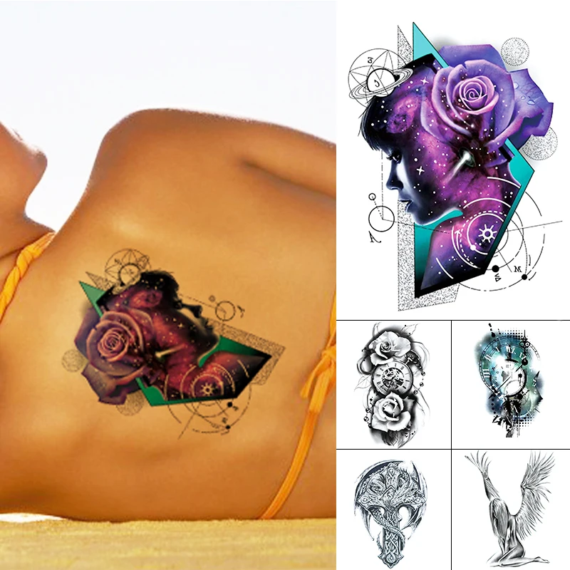 1 шт. розовое Galaxy Звездное небо девушка водонепроницаемое временное тату стикеры Ангел Flash татуировки, боди-арт рука поддельные татуировки