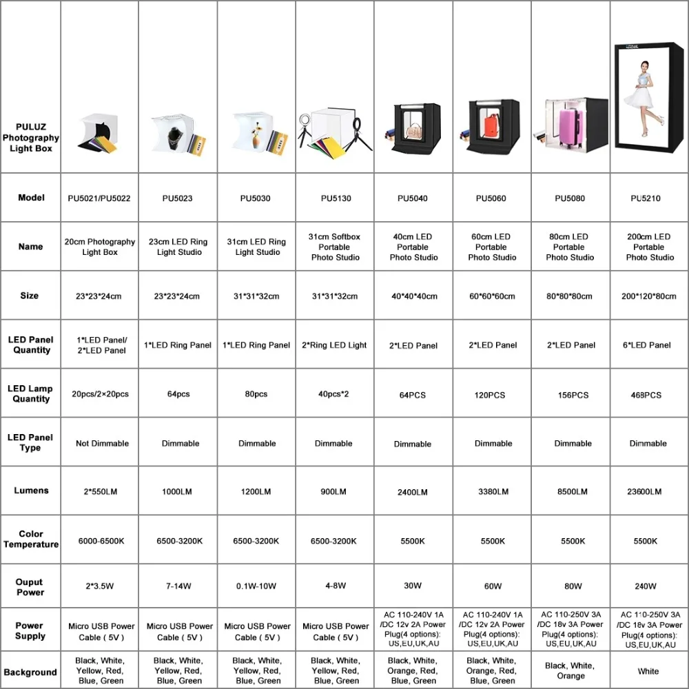 Model Feature 2puluz mini photo light box