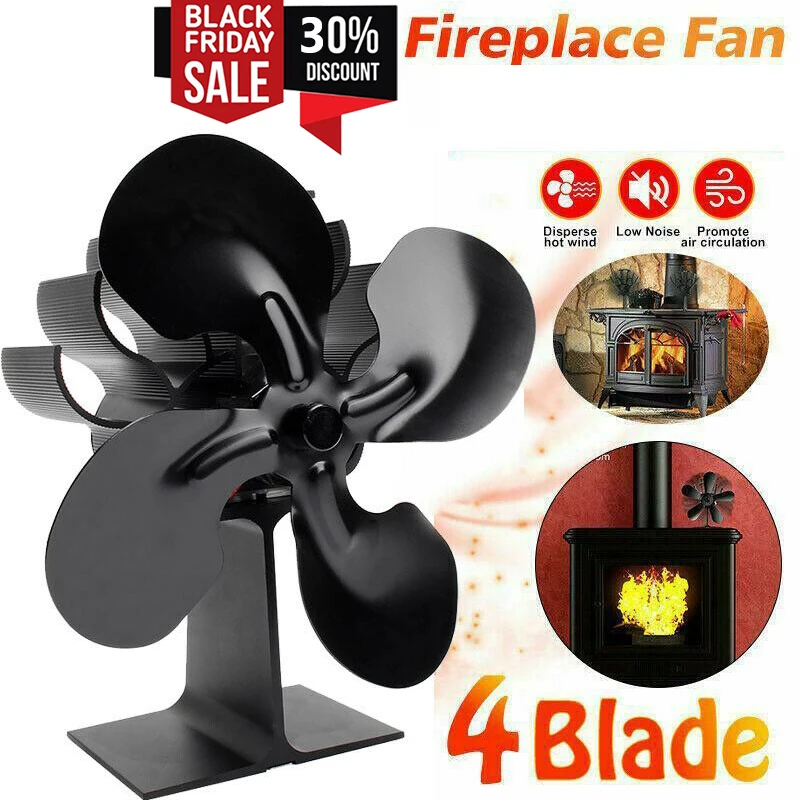 4 лопасти у камина, дровяная или гранулированная печь, эффективно рассеивает теплый воздух по комнате, электрическая плита, вентилятор