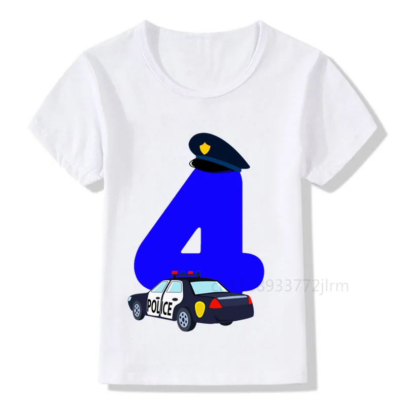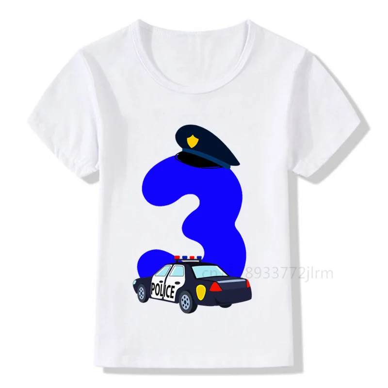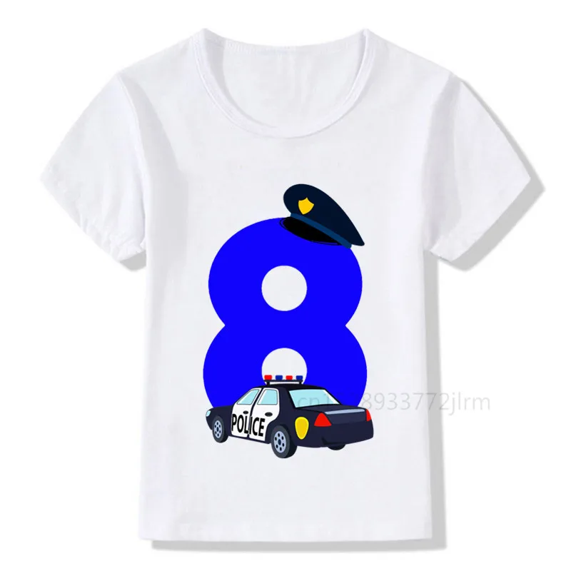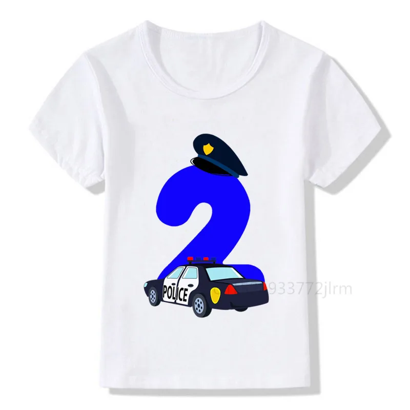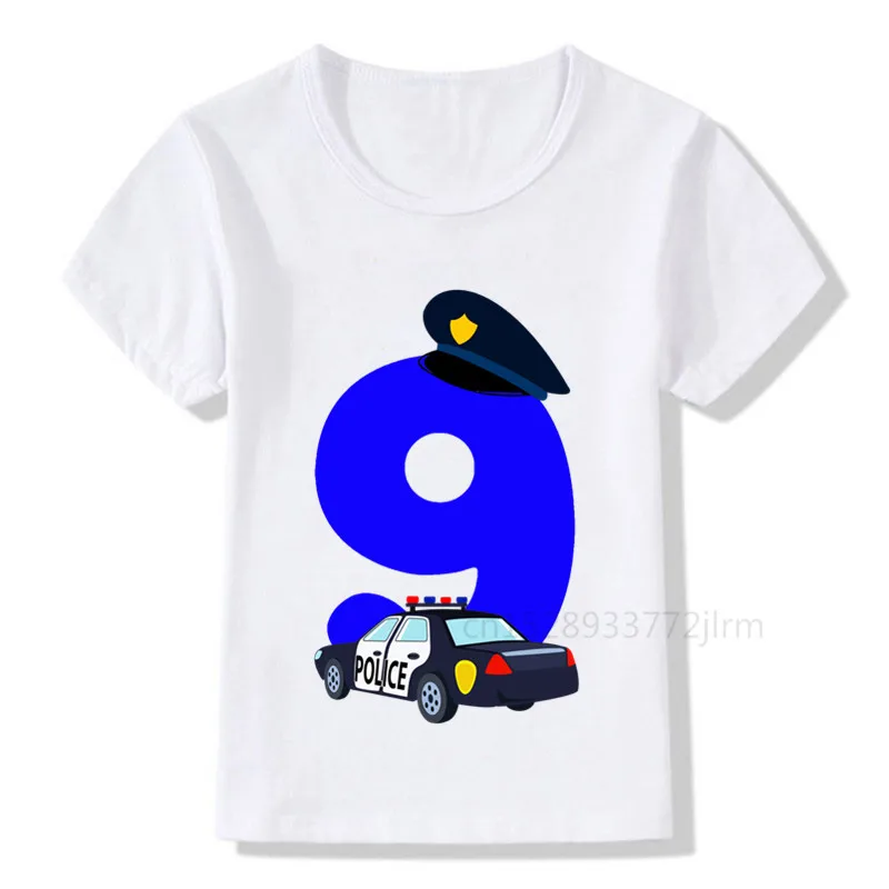 Футболка с принтом полицейского на день рождения от 1 до 9 лет Детские футболки с полицейской машиной для мальчиков Забавный подарок для мальчиков и девочек Подарочная одежда