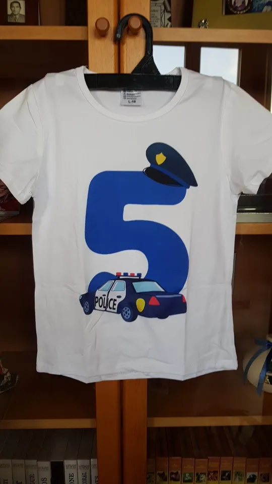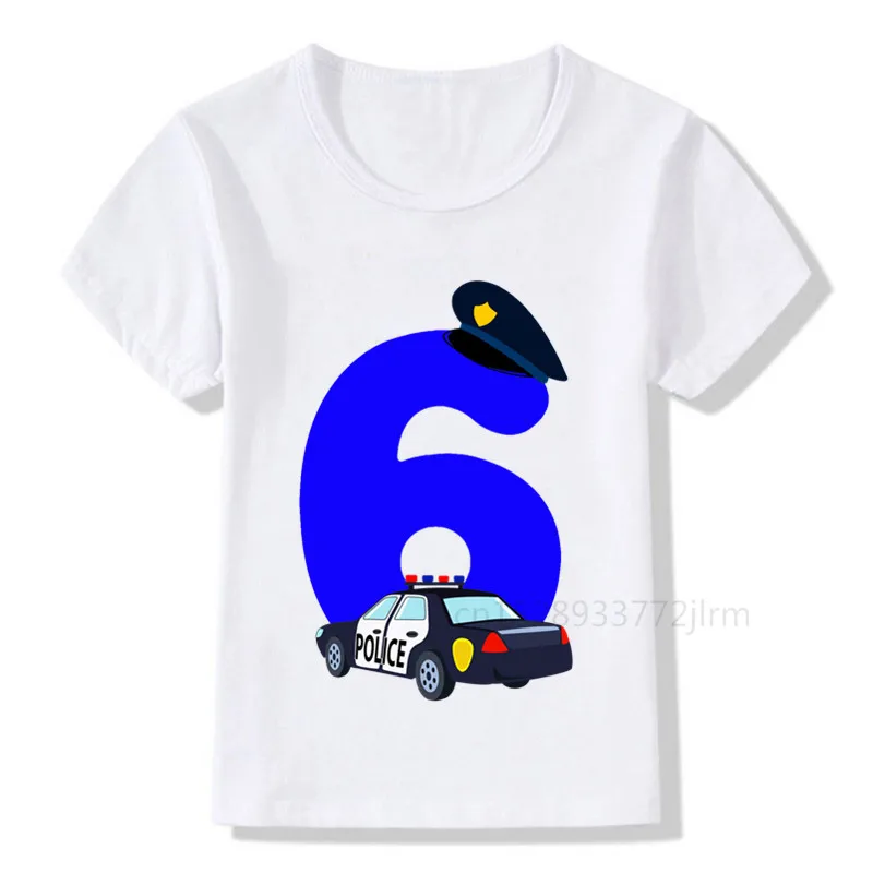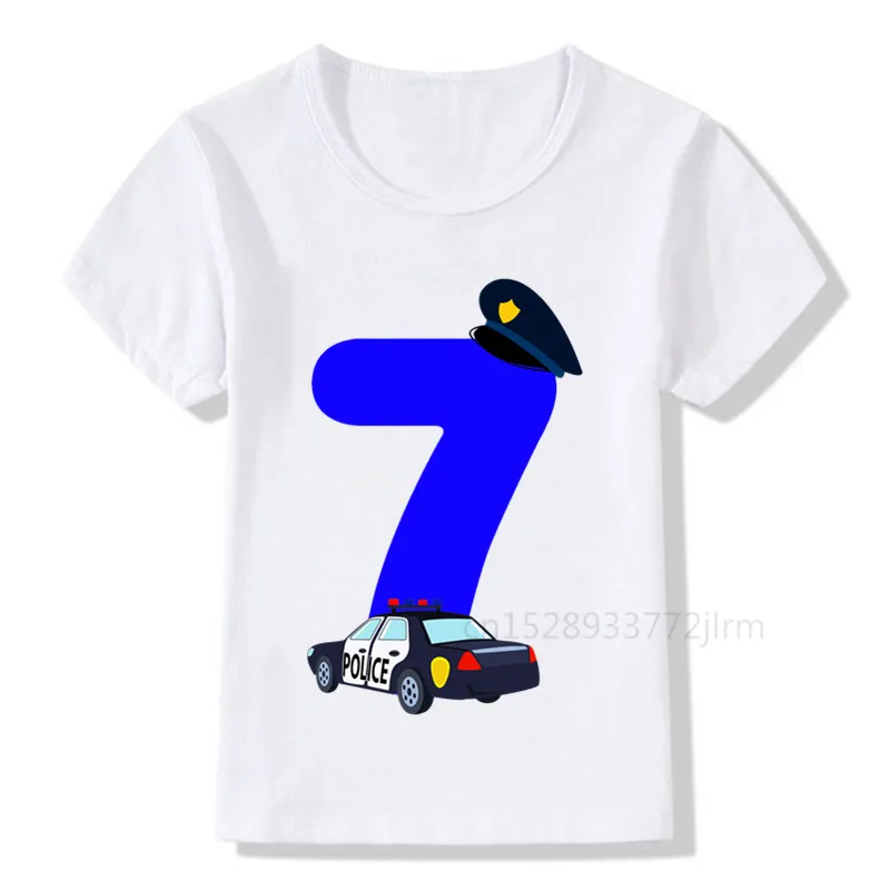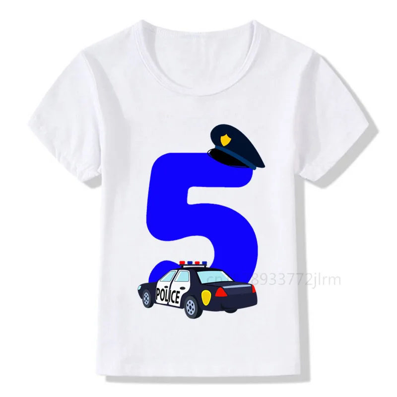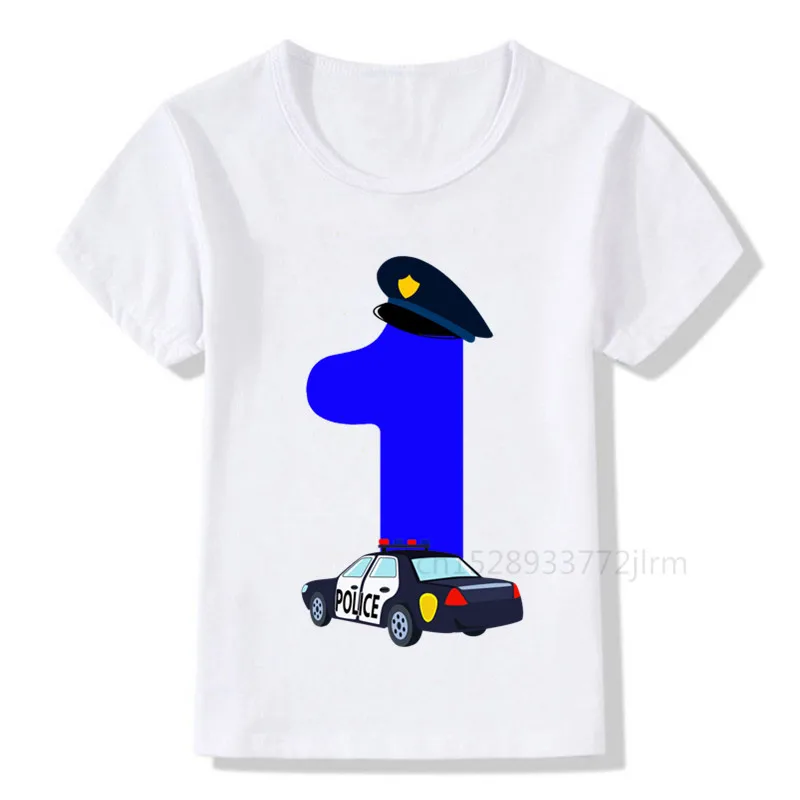 Футболка с принтом полицейского на день рождения от 1 до 9 лет Детские футболки с полицейской машиной для мальчиков Забавный подарок для мальчиков и девочек Подарочная одежда
