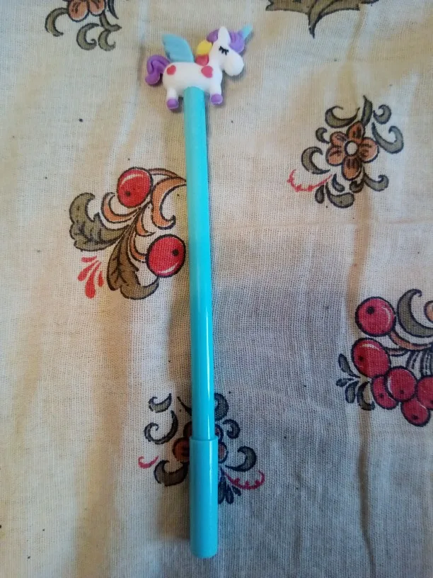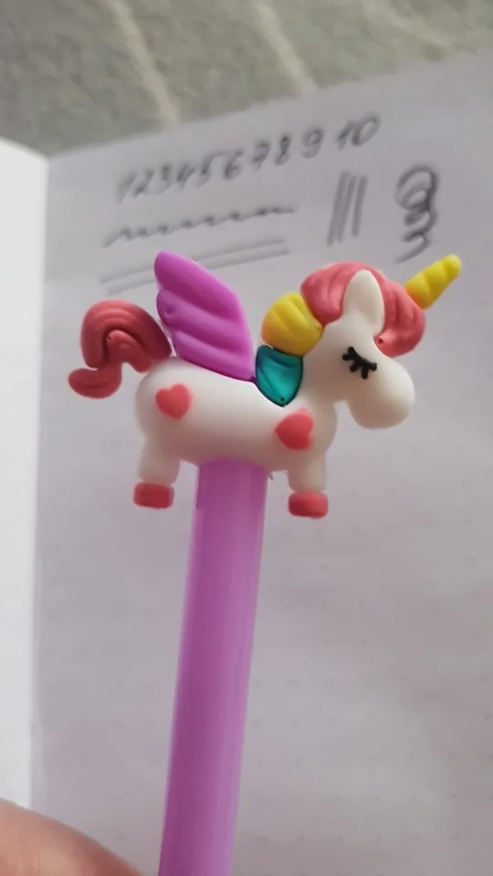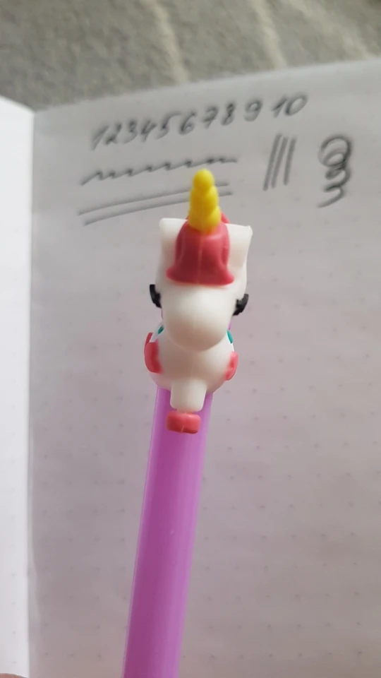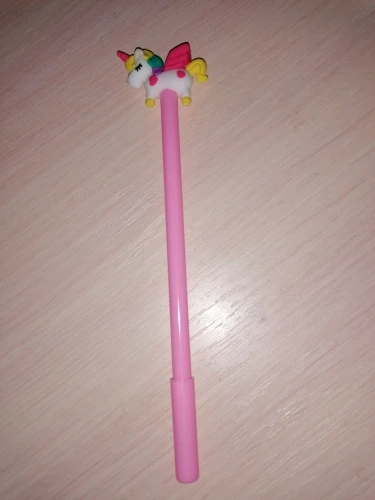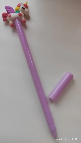 Ручка классная, дизайн ручки очень красивый. Фигурка единорога яркая, красивая - дочке очень понравилась. Пишет хорошо, стержень тонкий. Продавец общительный, отвечает на все сообщения по заказу. Советую к покупке этот товар - останетесь довольны качеством ручек!