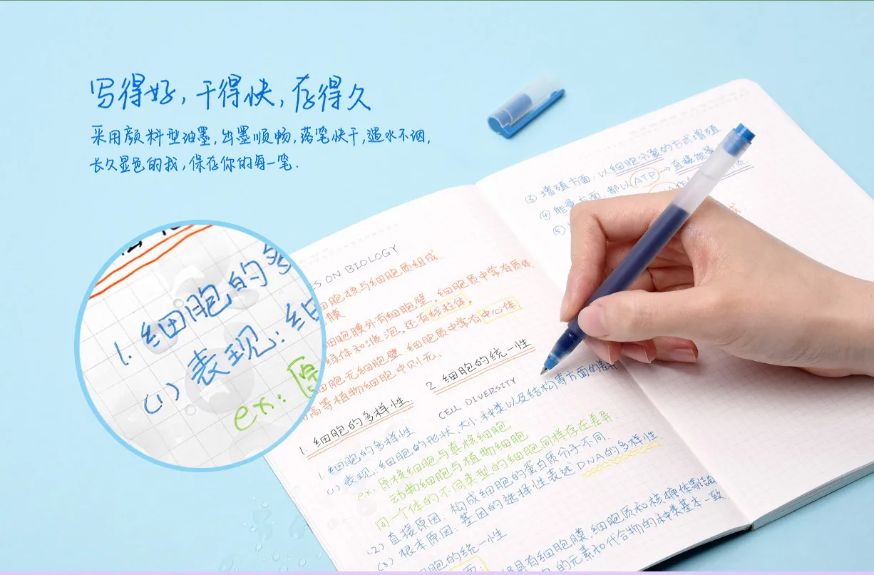 Основные параметрыМодель продукта: MJZXB03WCХрактеристика устройства: 0,5 мм гелевая ручка черного цветаЦвет изделия: оранжевый, желтый, зеленый, синий и фиолетовыйСпецификация упаковки: 5 шт./кор.