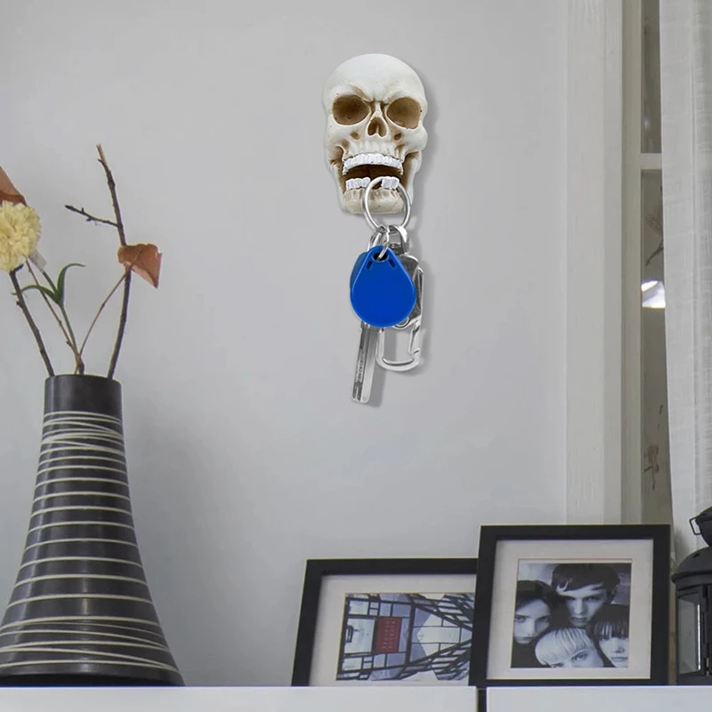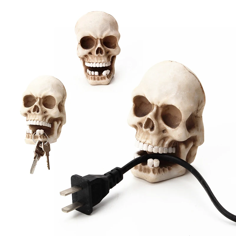 Креативный крючок для хранения ключей скульптура черепа, настенное крепление, настольное украшение со скелетом из смолы, статуя для забавного подарка, декор для вечеринки
