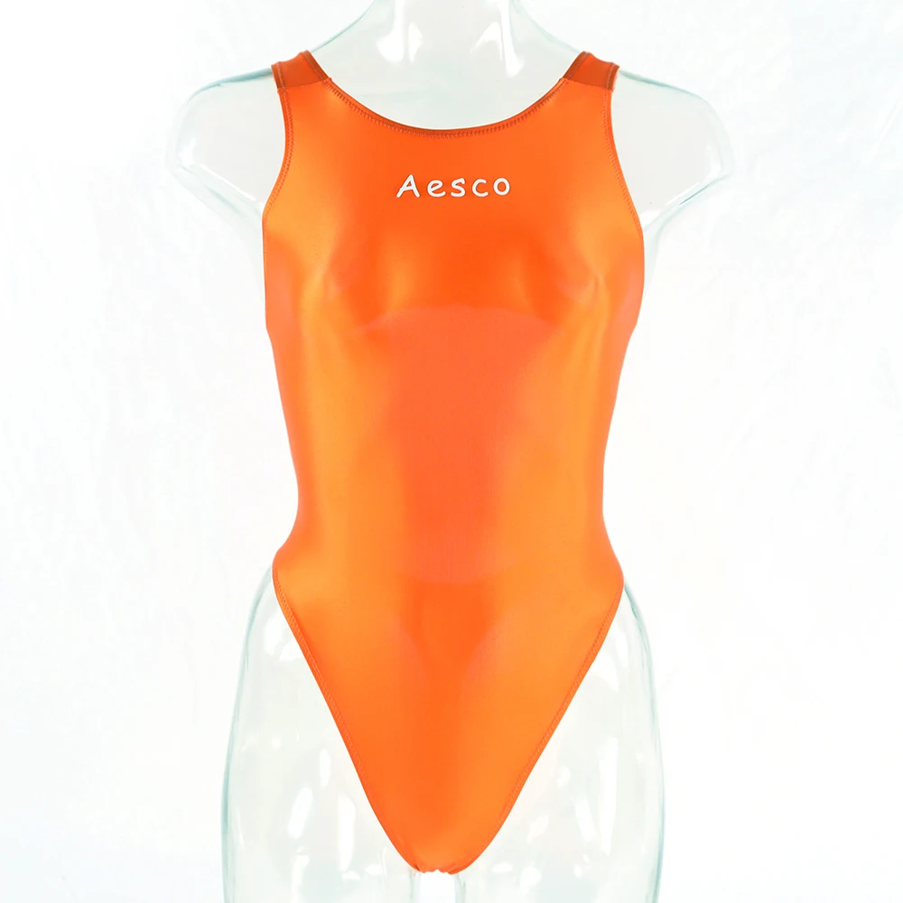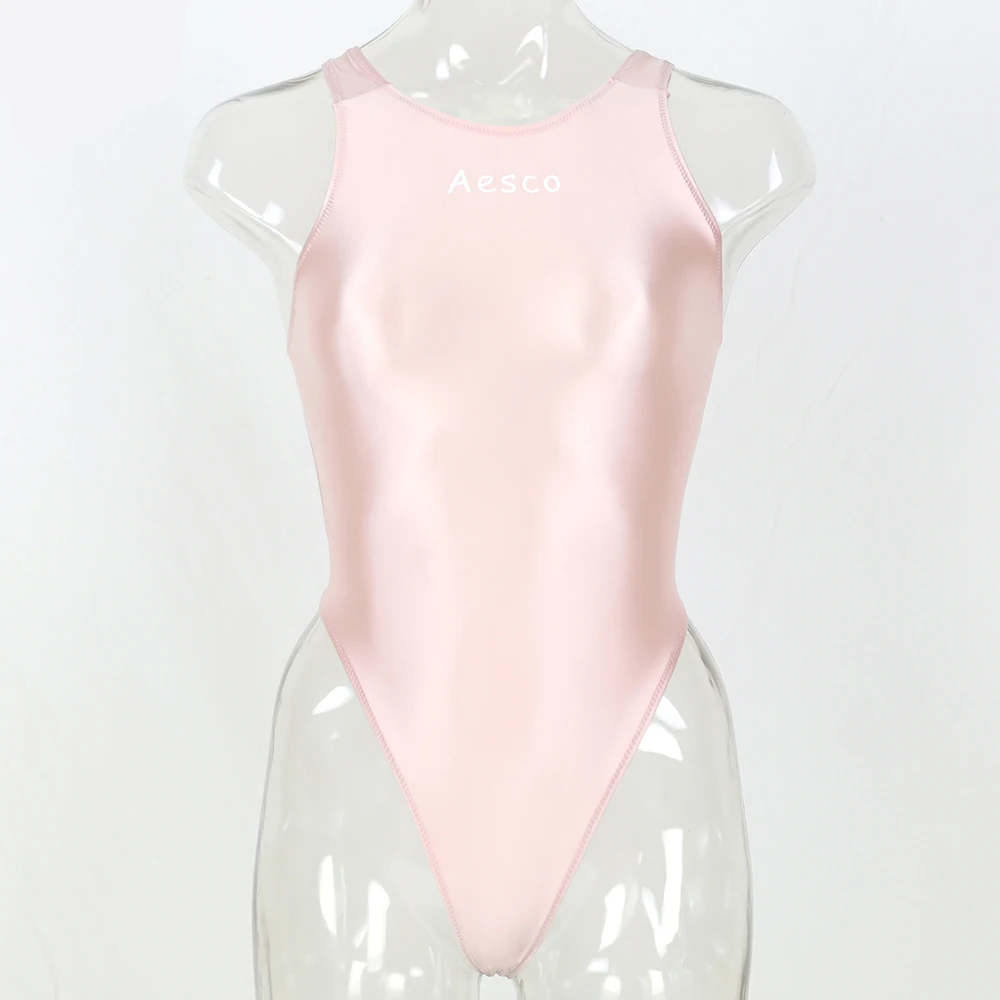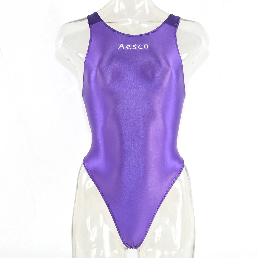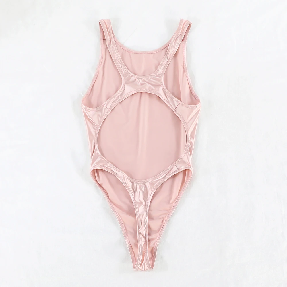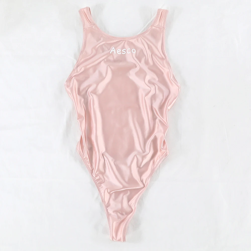 Слитный купальник женский масляный Блестящий купальник с высокой вилкой и Т-образным вырезом для бассейна water day пикантные облегающие колготки купальник XCKNY AESCO