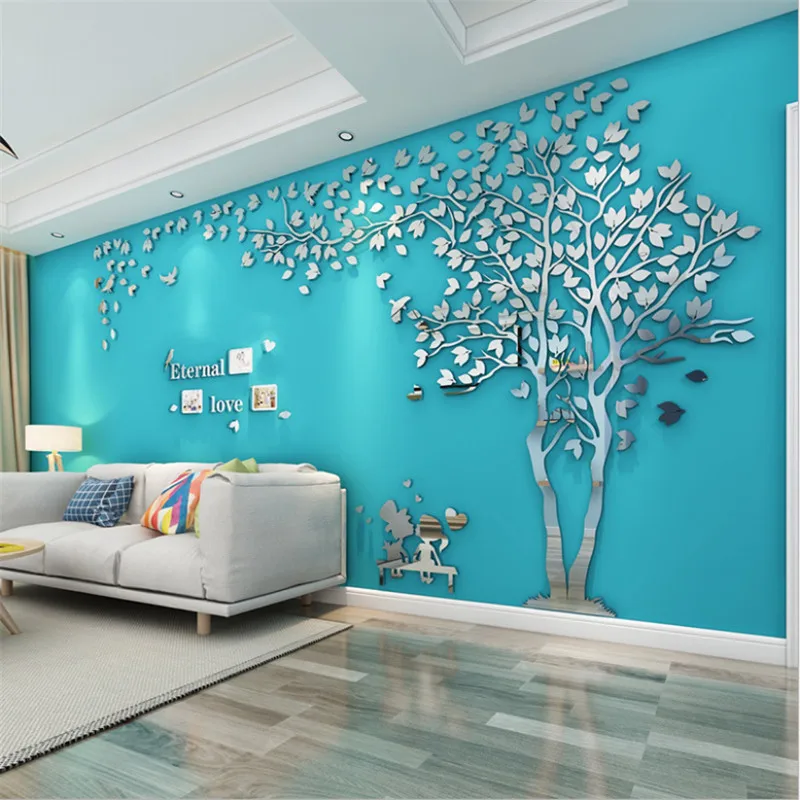 Акриловая зеркальная 3d-наклейка «сделай сам», большое дерево, наклейка для гостиной, фона для телевизора, настенное украшение, домашняя Настенная роспись, художественная стена Название продукта: акриловые наклейки на стену Материал: акрил