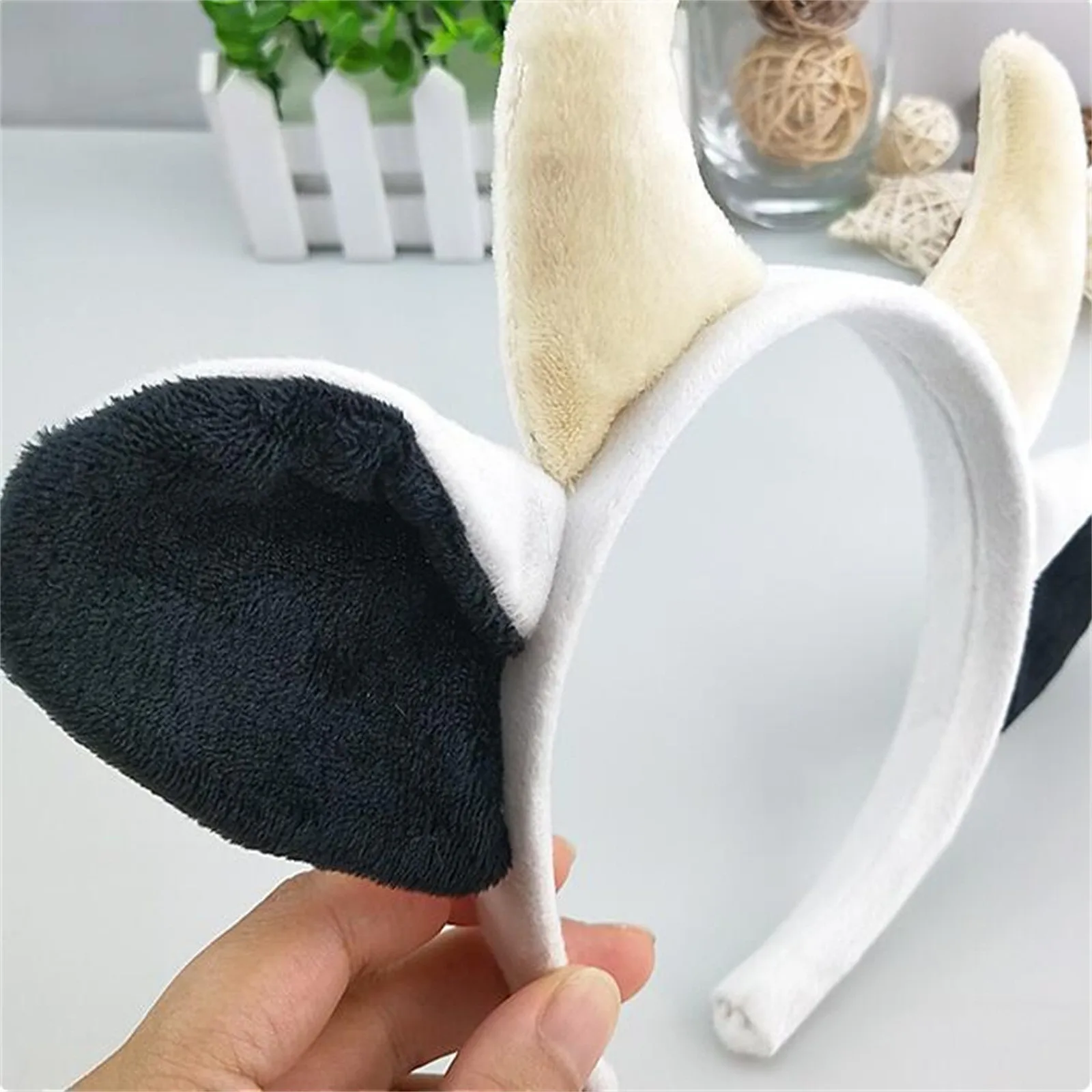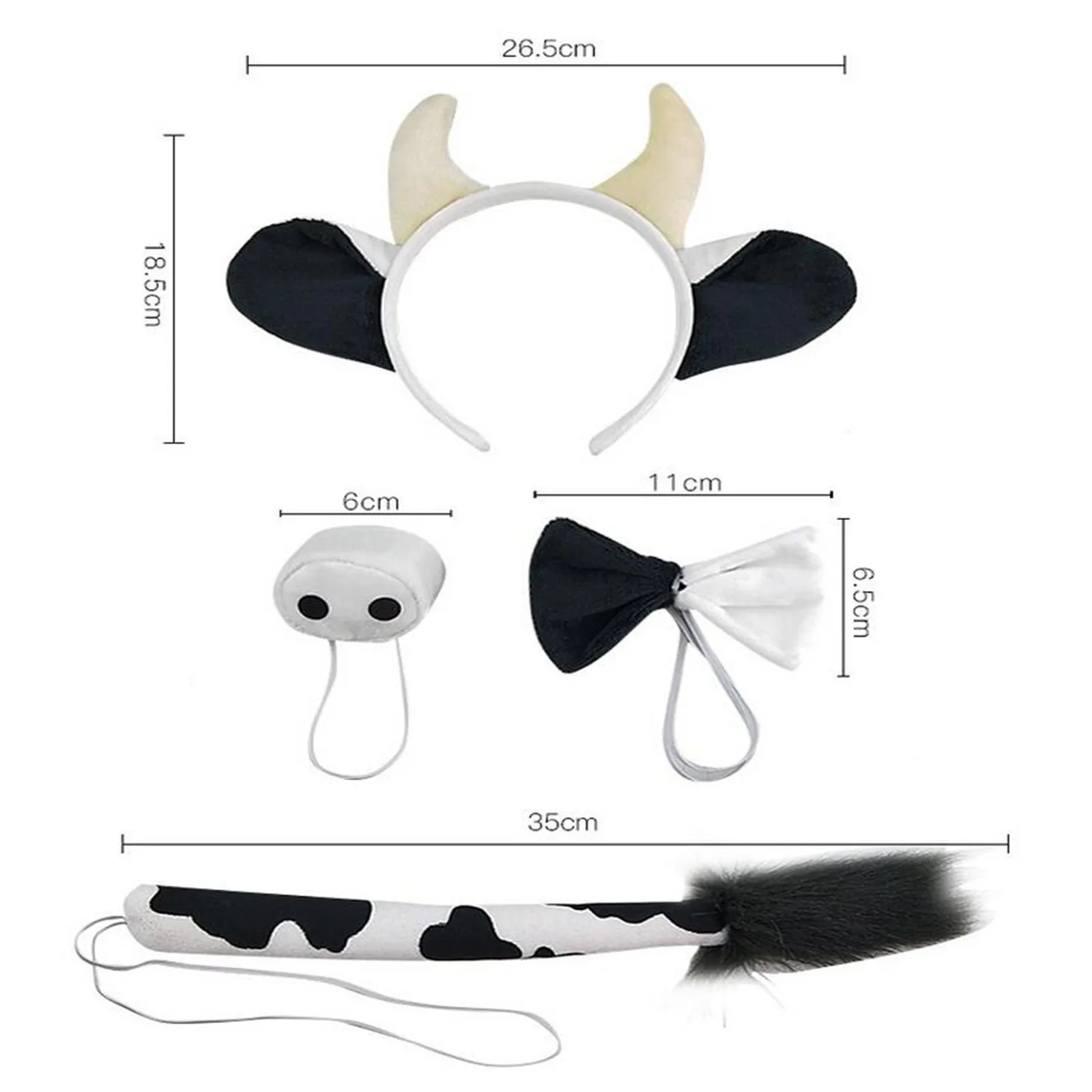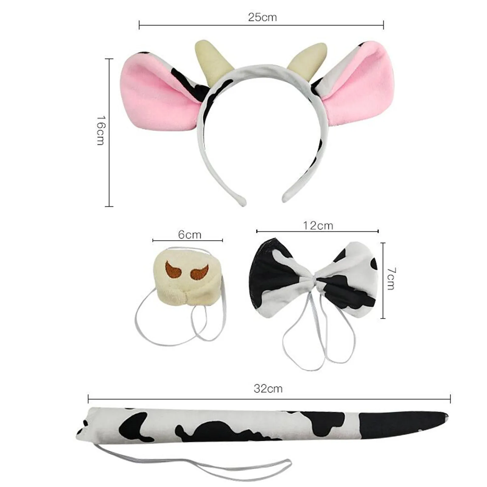 Повязка на голову с милыми коровьими ушками, кавайная повязка на голову с животными, галстук-бабочка, Детский день, украшение, головной убор, подарок, комплект из 4 предметов, детские галстуки для волос, Opaska A