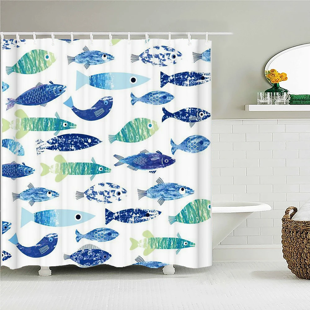 Водонепроницаемая шторка для ванной с 3D-принтом и крючками
