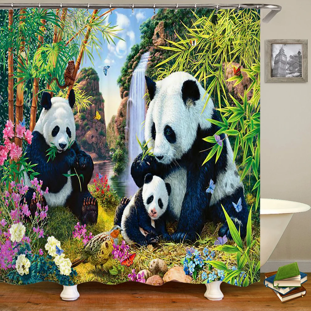 Занавеска для душа из полиэстера, водостойкая, с рисунком животных