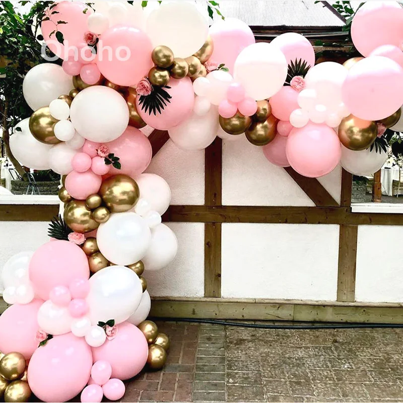 Декоративная гирлянда из розового, белого и золотого металлик, набор для арки