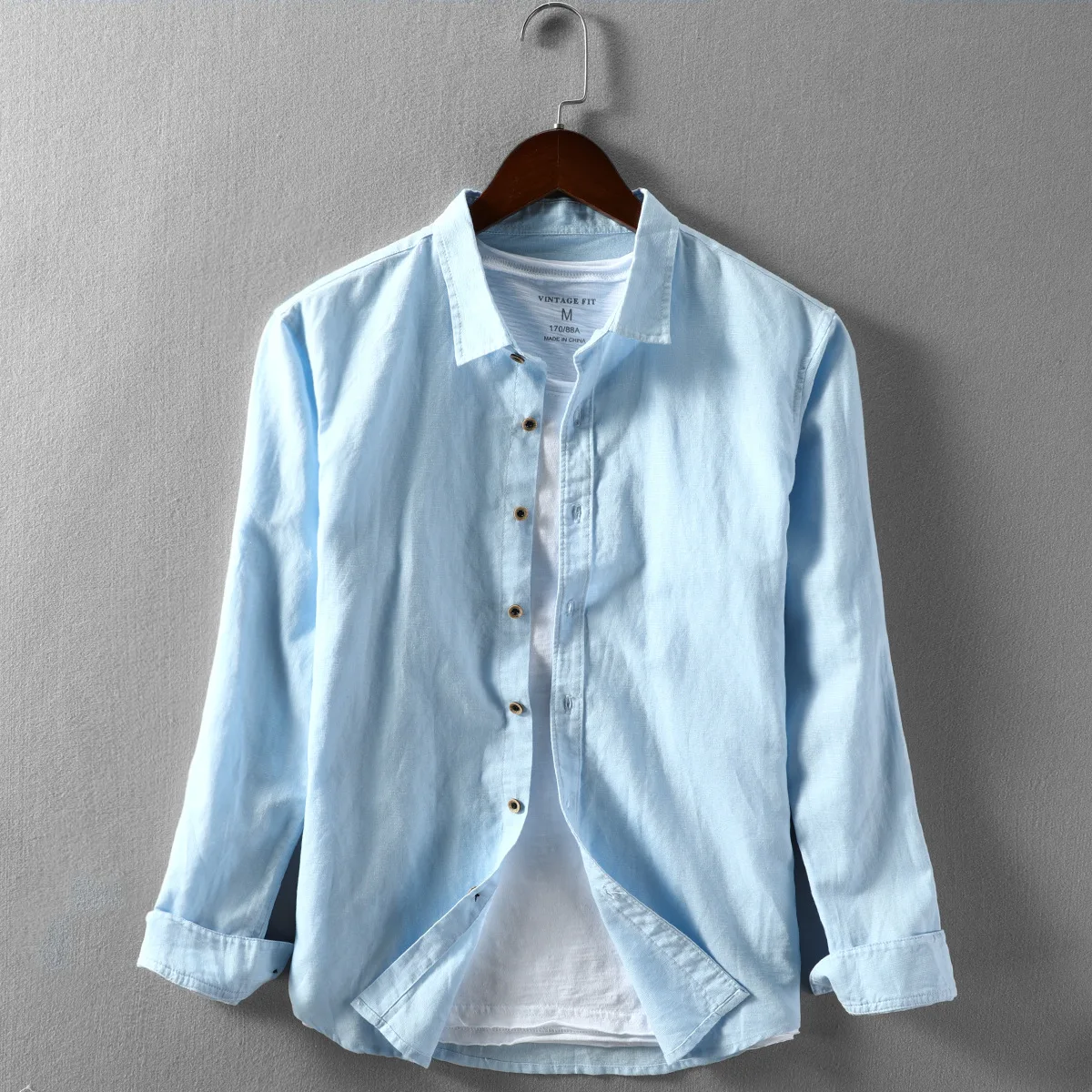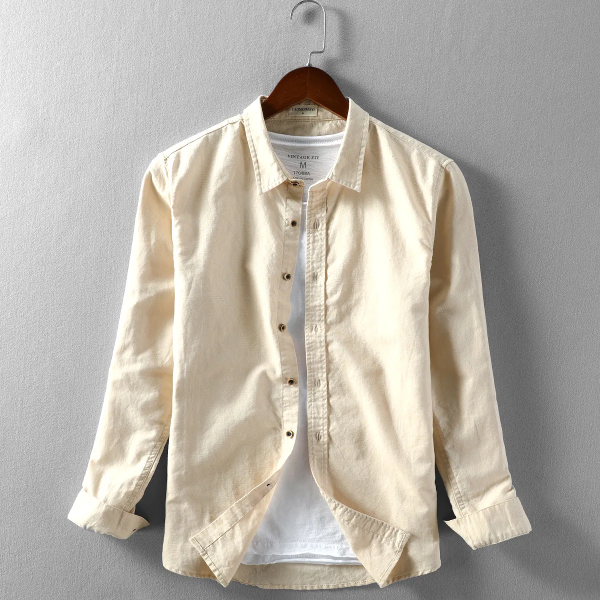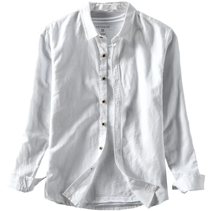Винтажные льняные рубашки для мужчин, хлопок, пеньковая ткань, дыша...
