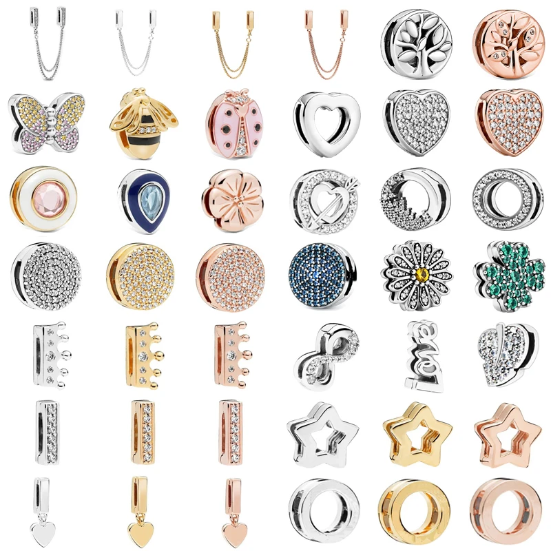 S925 серебро цвет отражение клип бусины шармы Круглый Кристалл Корона сердце любовь Бусины Подходит для оригинального Pandora женский браслет