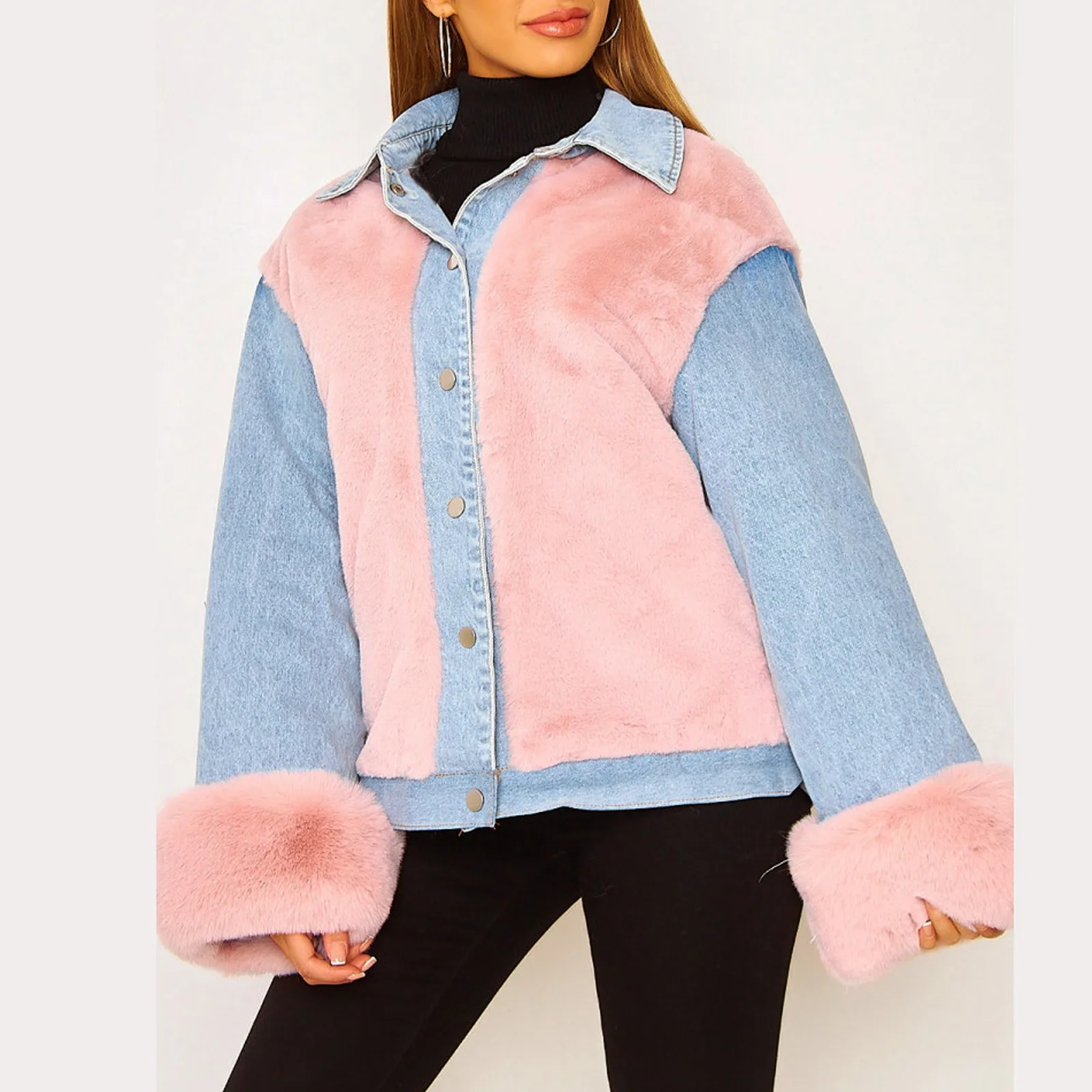 Модный женский Повседневный плюшевый кардиган в стиле пэчворк, верхняя одежда, джинсовая куртка, пальто