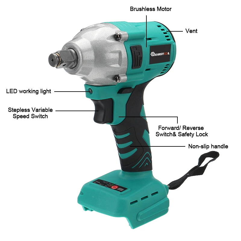 MUSTOOL 18V Аккумуляторный ударный ключ, дюймовый стандарт бесщеточный Электрический шуруповерт сверло 588N.m Крутящий момент ключ, дюймовый стандарт для Makita 18V Батарея Мощность инструменты
