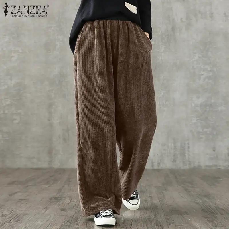 Женские вельветовые брюки с принтом репы, кафтан ZANZEA, широкие брюки, весенние повседневные длинные брюки палаццо S-