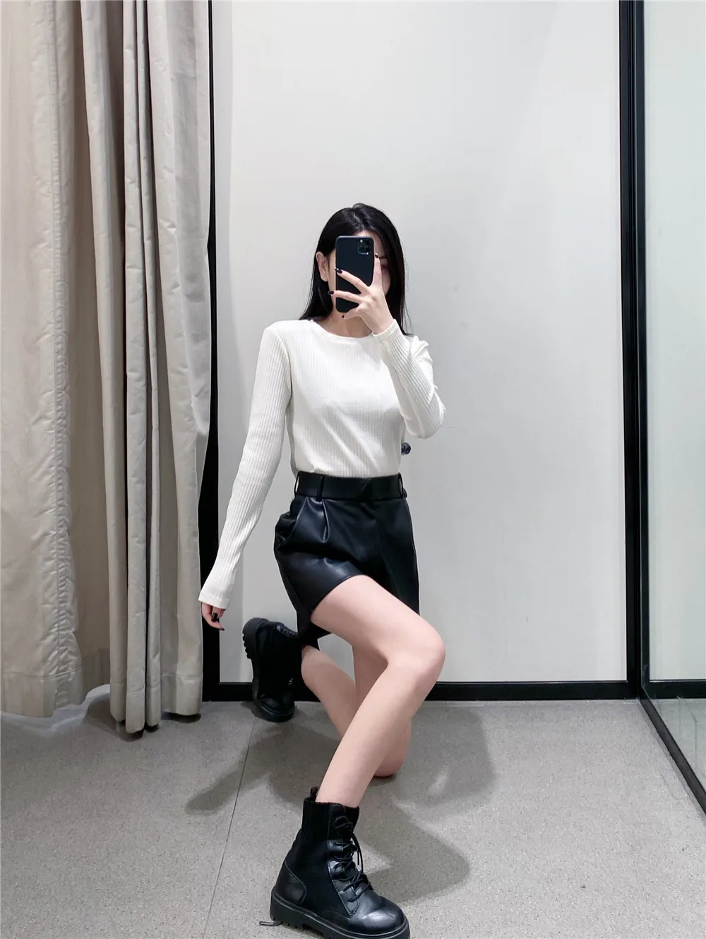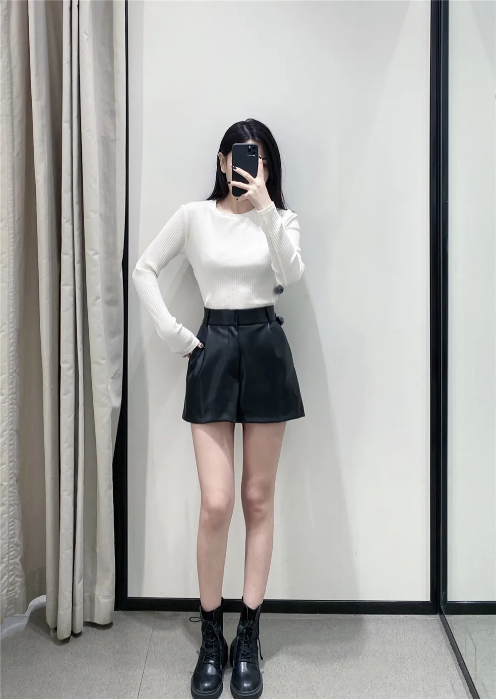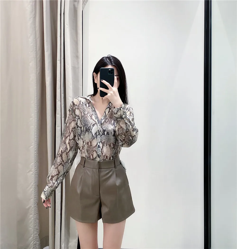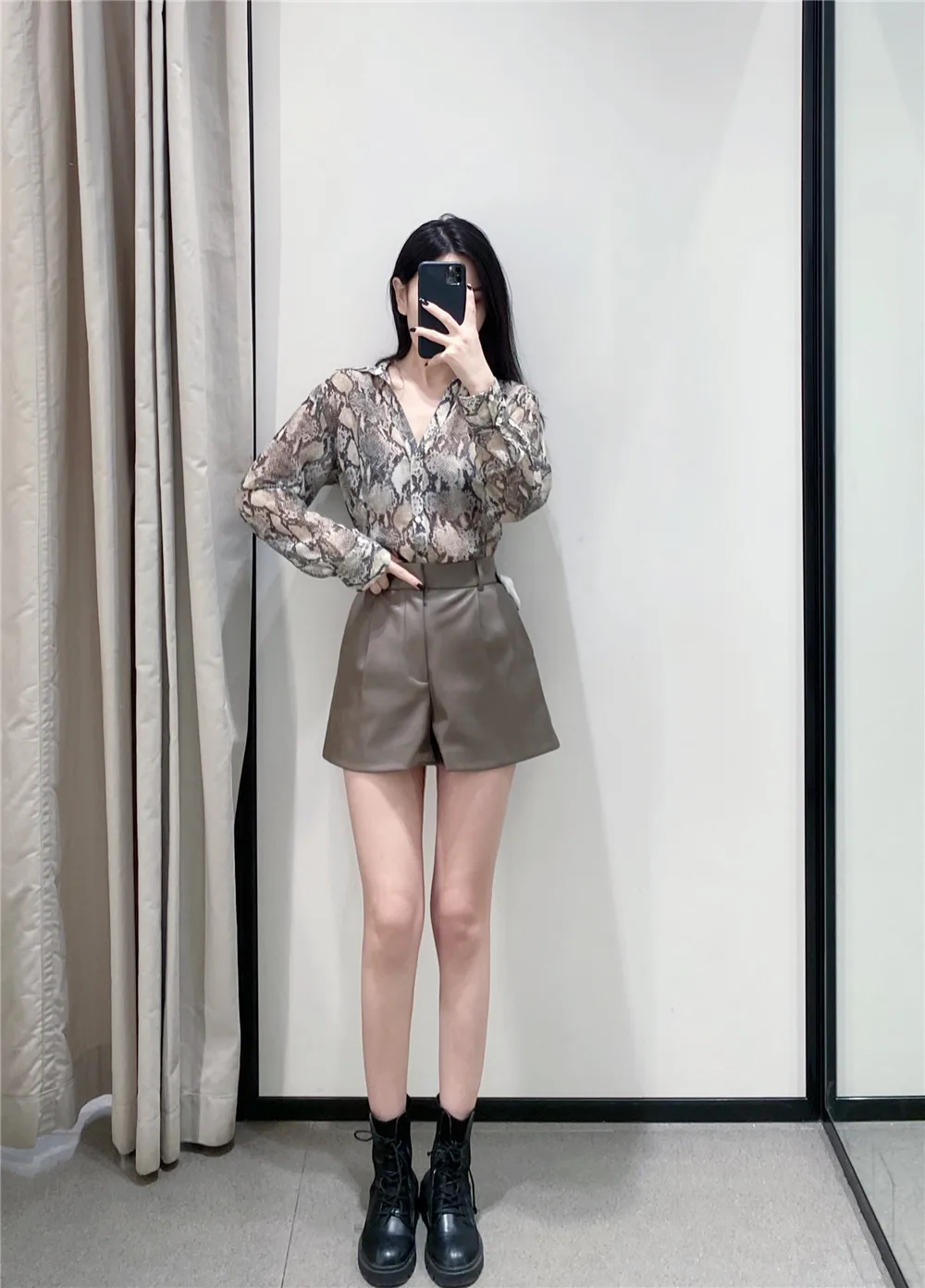 Шорты женские из искусственной кожи, с высокой талией, неопределенно драпированные, винтажные, 2021