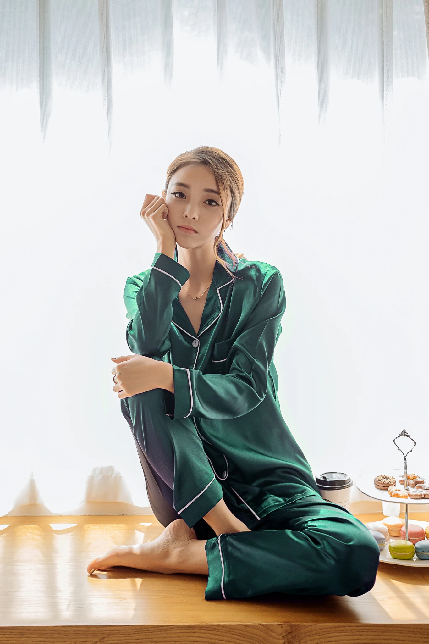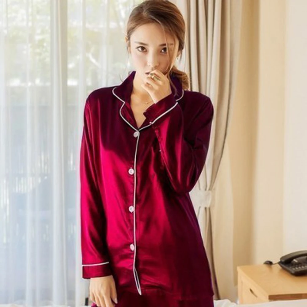 Пижама женская атласная с длинным рукавом и искусственным шелком