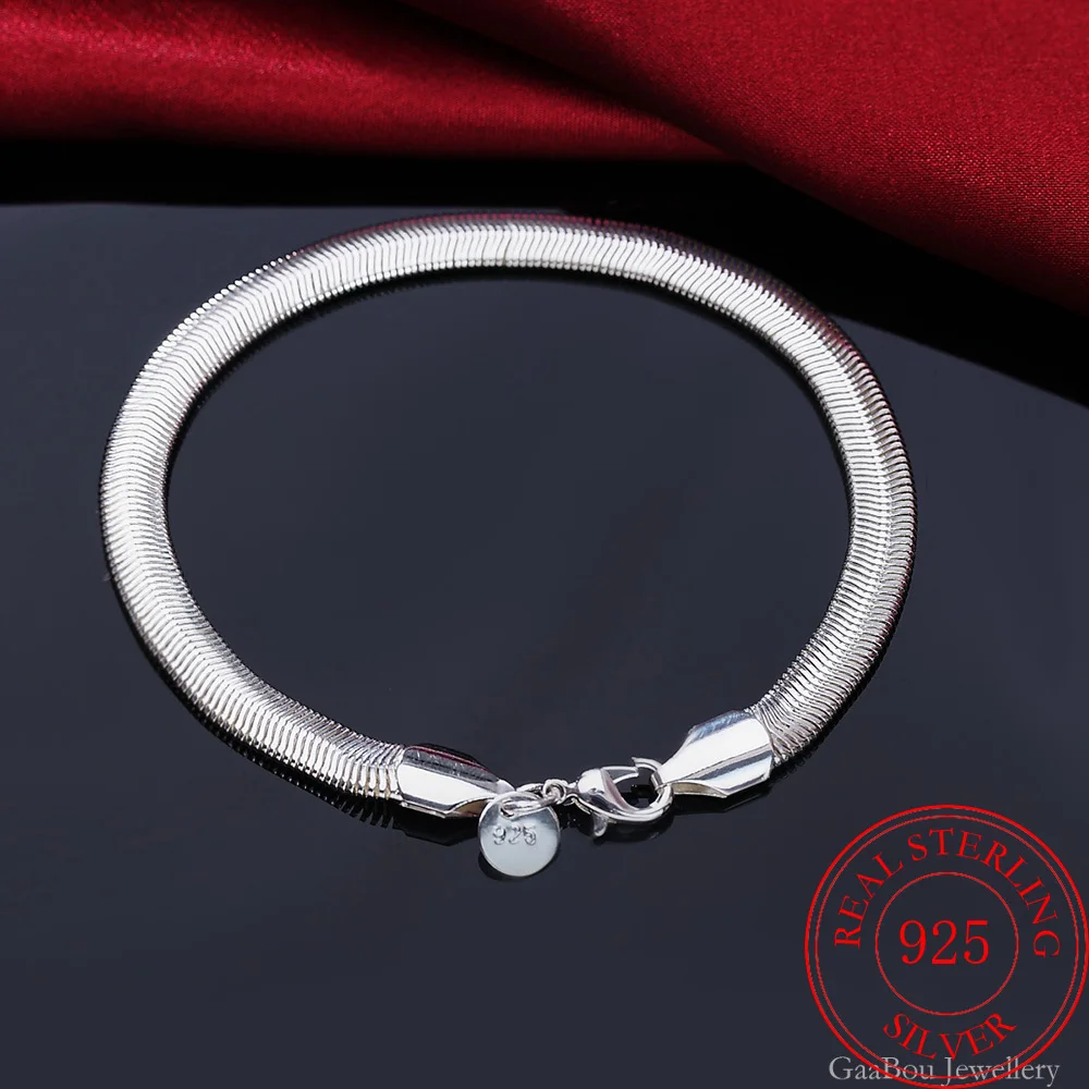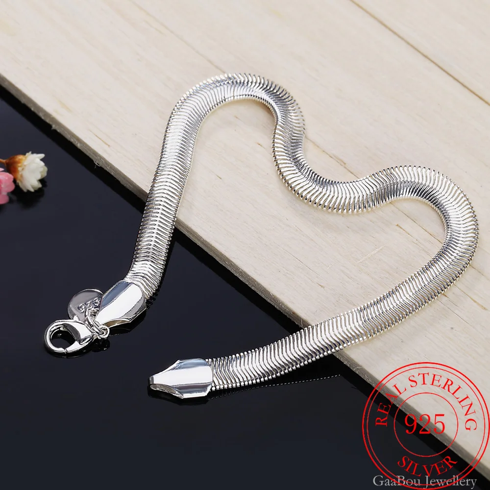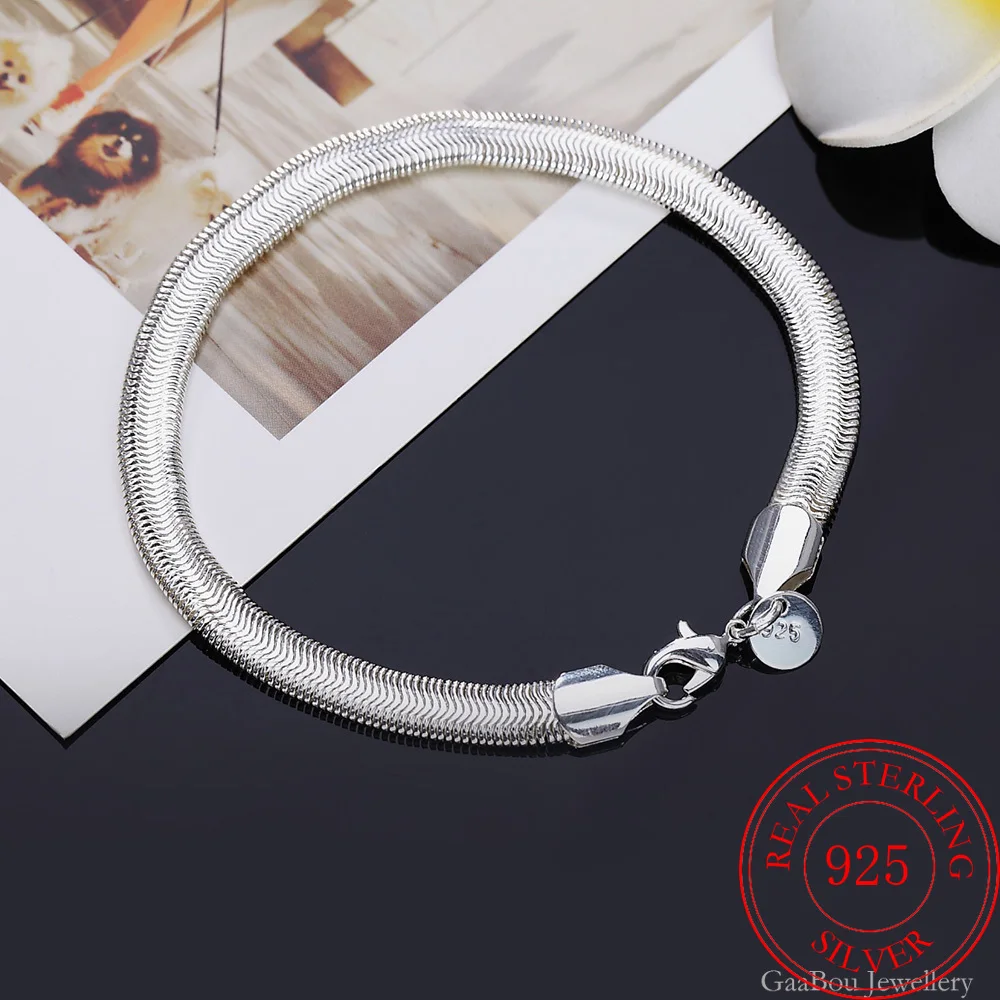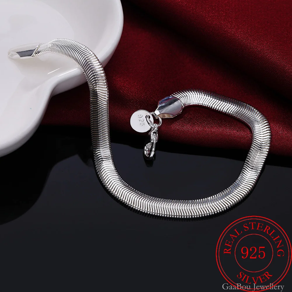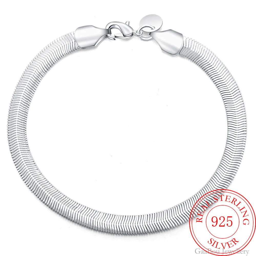 Мужской браслет из стерлингового серебра 925 пробы с цепочкой в виде змеи 21 см, очаровательный браслет для женщин для девушек-подростков, подарок для женщин, ювелирные украшения