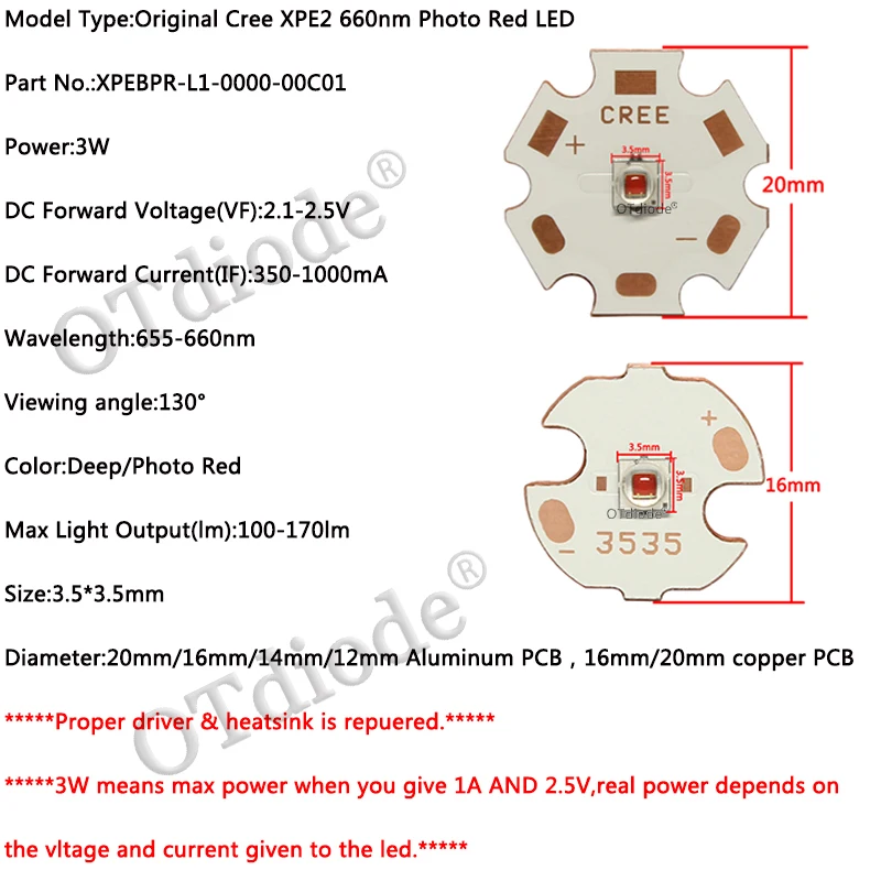 10 шт. оригинальный Cree XPE2 XP-E2 фото красный 660nm 3 Вт Мощный светодиодный глубокий красный чип диод излучатель светильник для внутреннего освещения для роста растений