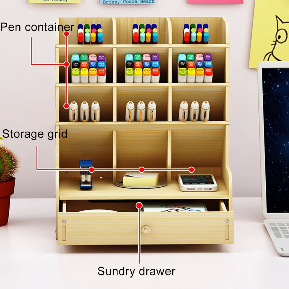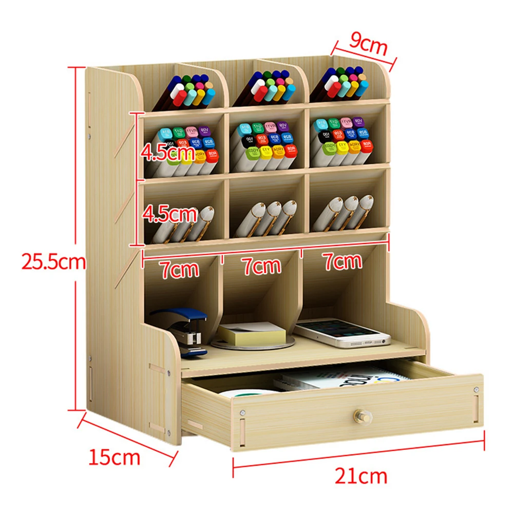 Деревянный многофункциональный настольный держатель для ручек с ящи...