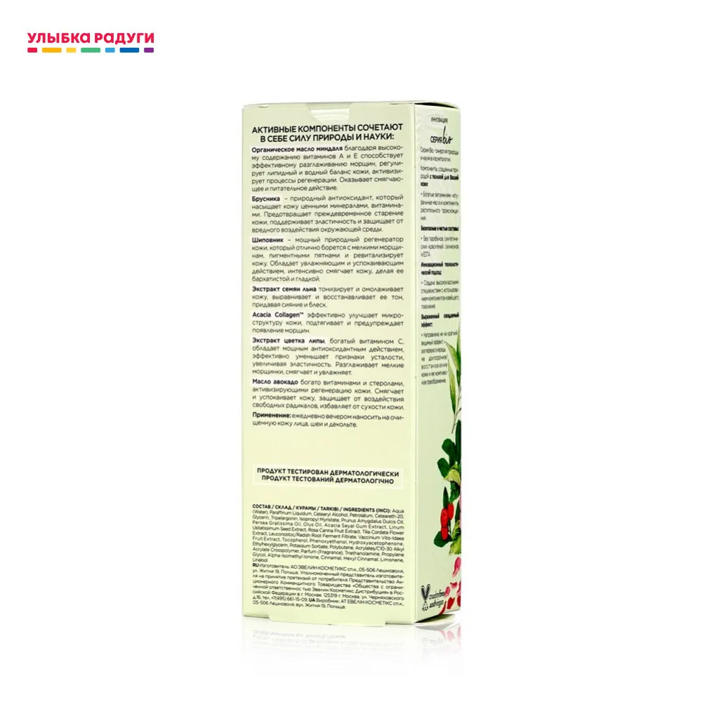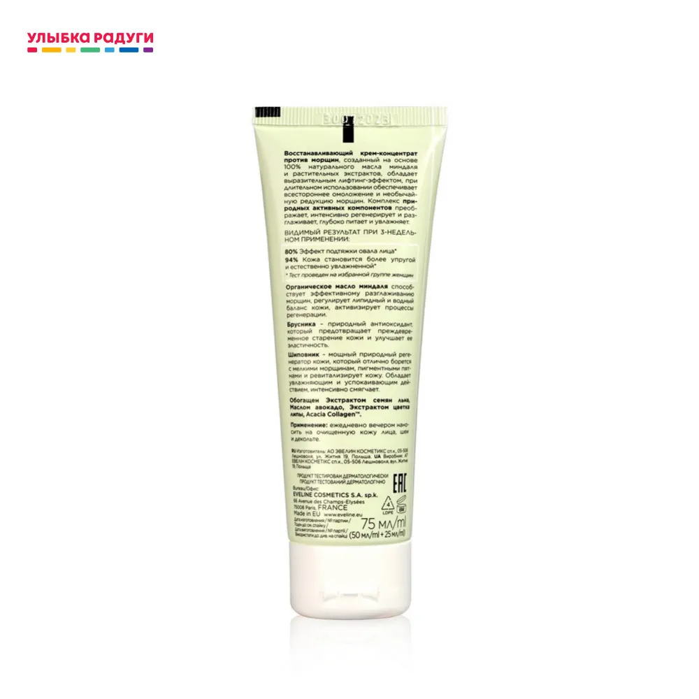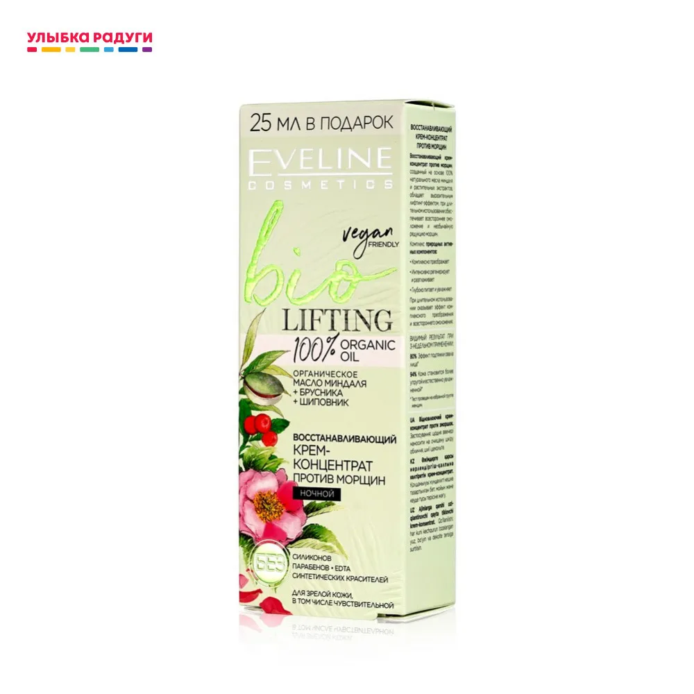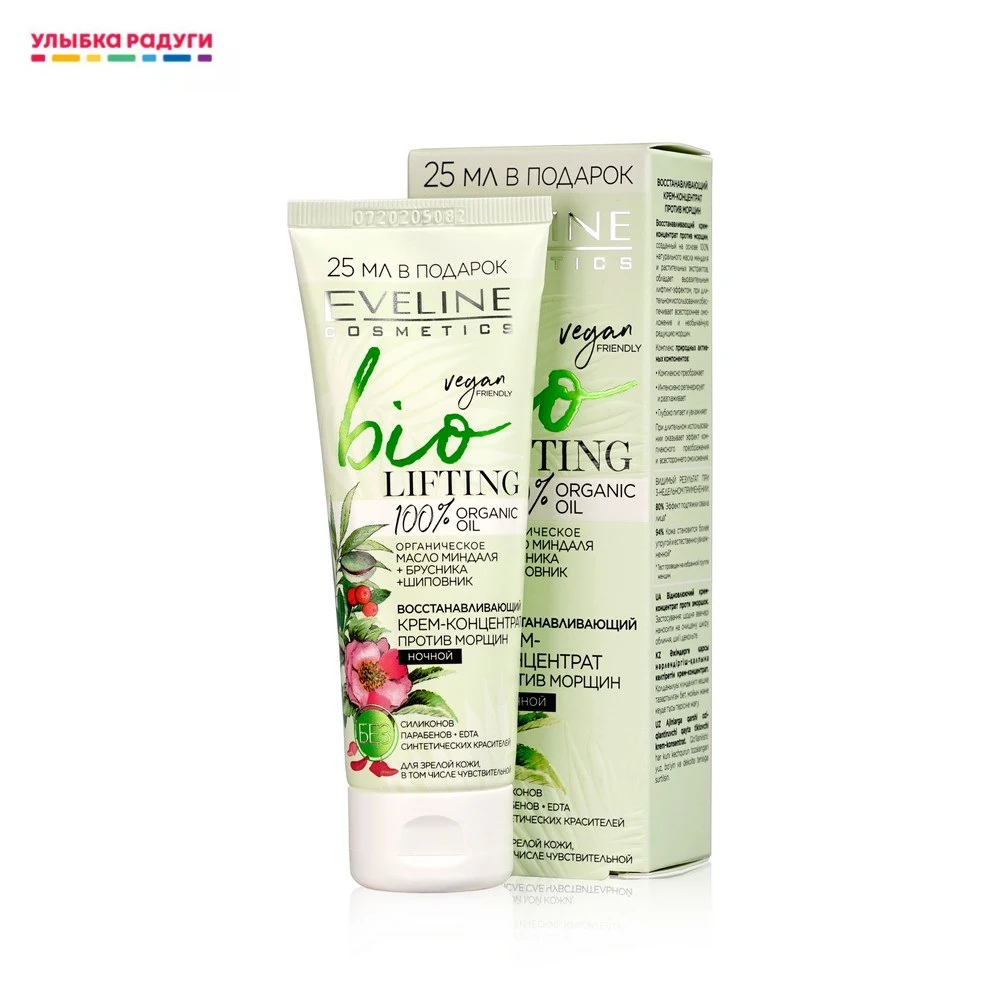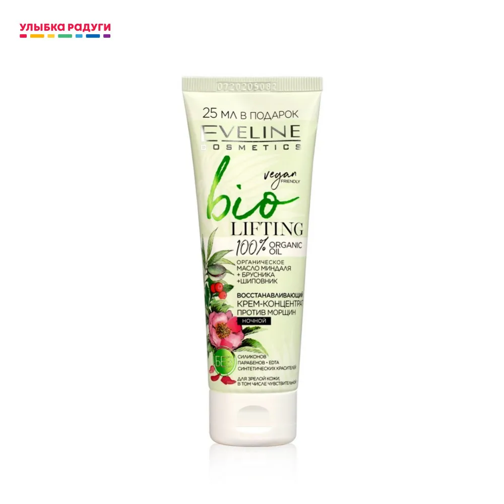 Ночной крем - концентрат для лица Eveline BIO " lifting " восстанавливающий , против морщин для чувствительной кожи 75мл