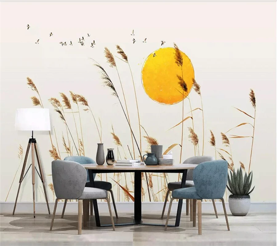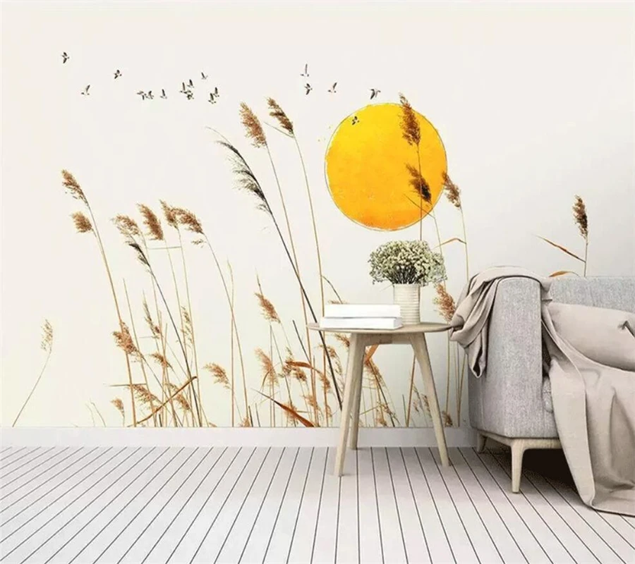 Настенные 3d обои на заказ, маленькие свежие тростниковые, в нордическом минималистическом стиле, в современном стиле, для гостиной, спальни, фоновой стены для телевизора, фото обои