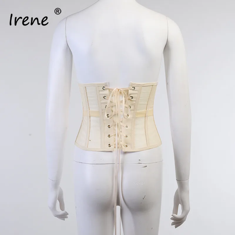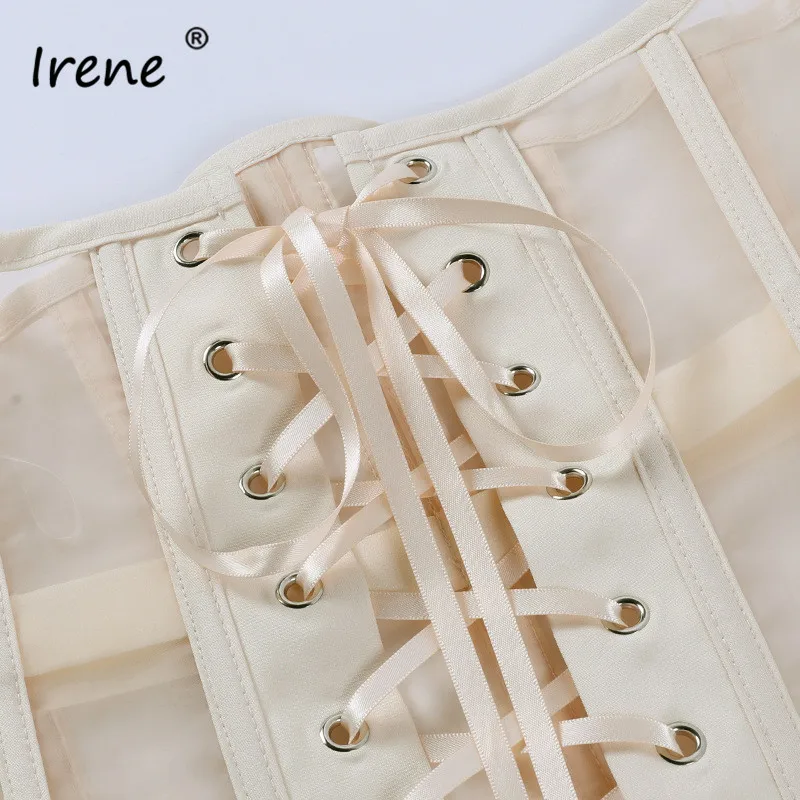 Irene сетчатый прозрачный сексуальный бюстье, укороченный топ, на завязках сзади, клубный Топ, корсет, топы для женщин