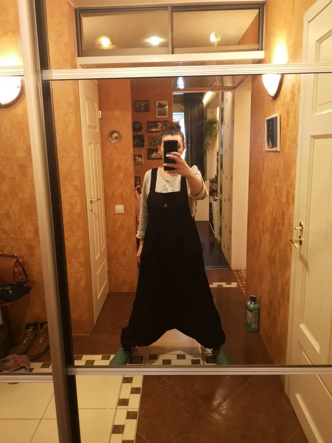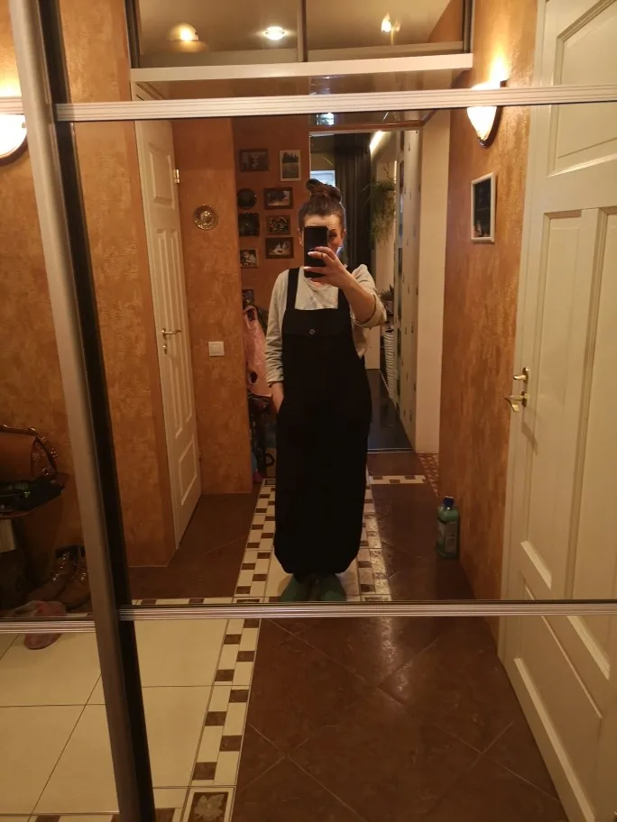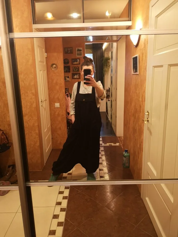 Комбез отличный! Смотрится очень круто! Единственный минус электролизуется аж трещит когда снимала, но думаю после кондиционера будет норм. А так очень довольна покупкой! У меня рост 165см по длинне даже запас имеется скорее всего буду лямки сантиметров на 5 укорачивать, тогда штанины хорошо, без складки внизу.