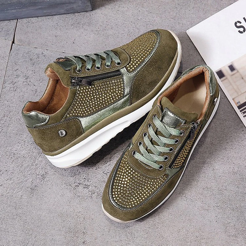 Кроссовки женские, на платформе, с молнией, на шнуровке