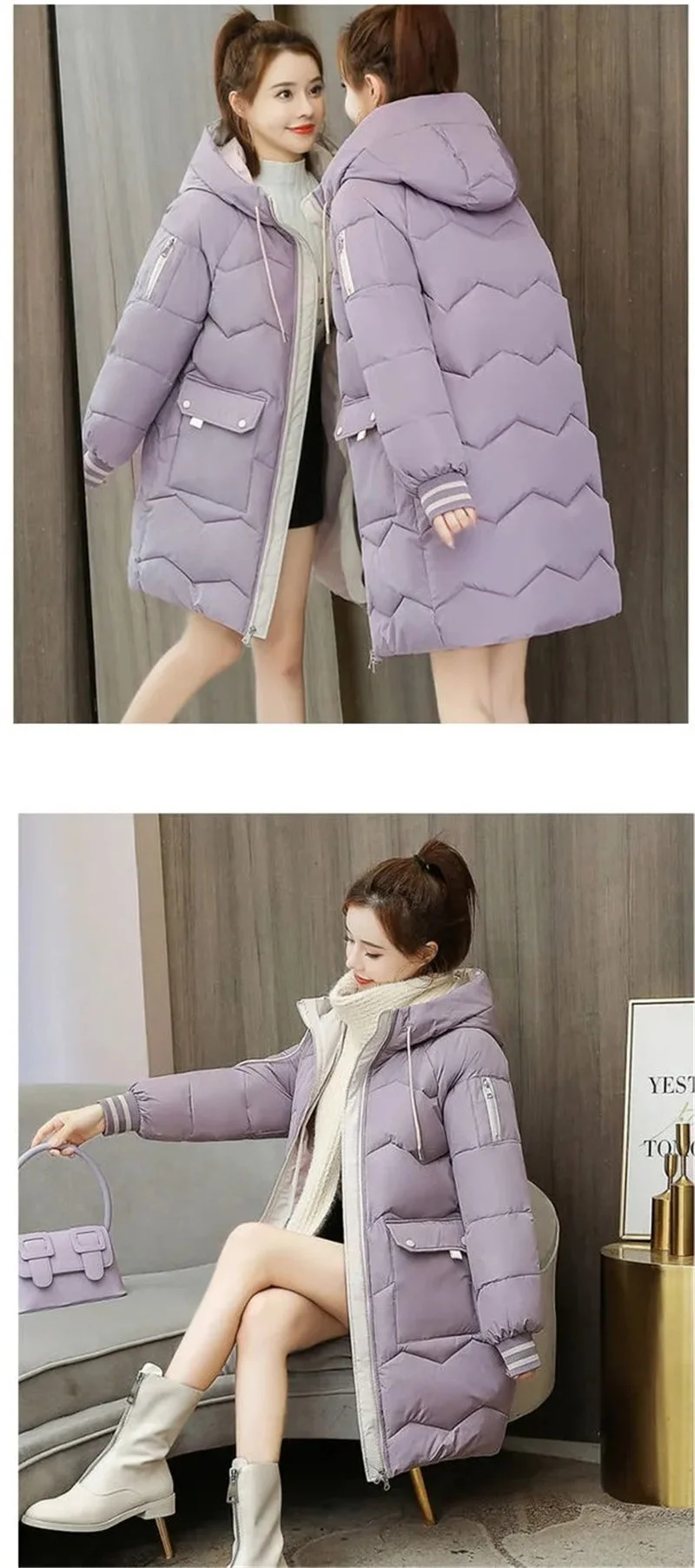 Женское зимнее пальто, новинка 2021, Женская хлопковая одежда средн...