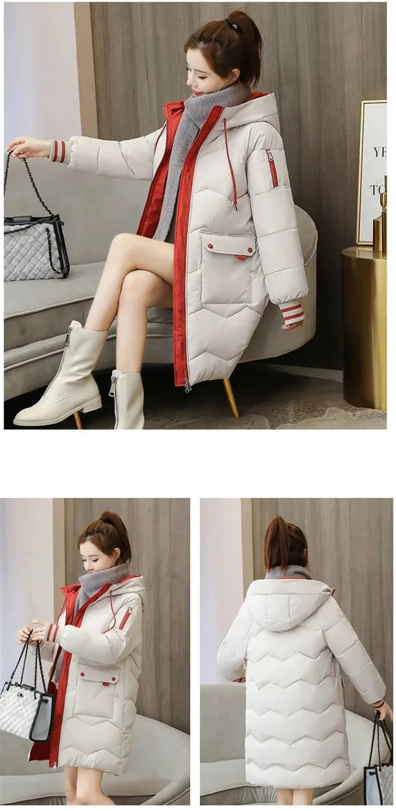 Длинное пуховое пальто из хлопка, женская зимняя парка, свободная т...