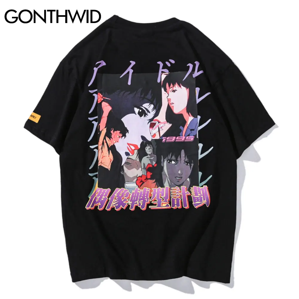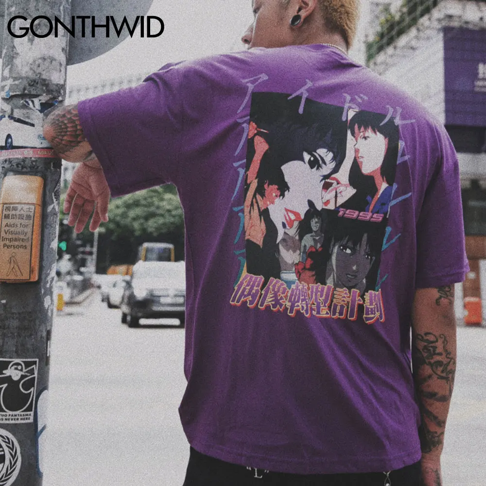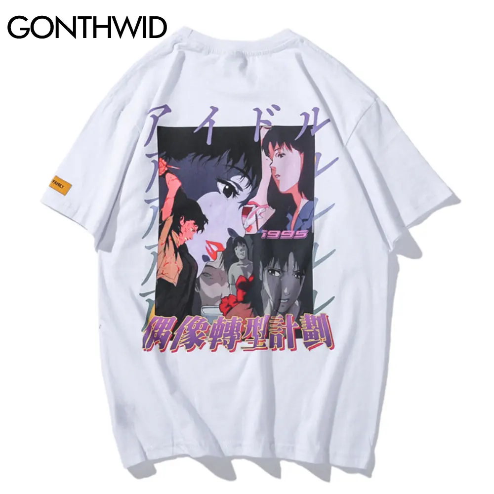 Футболка GONTHWID мужская хлопковая с коротким рукавом, модный топ в стиле хип-хоп с мультяшным аниме для девочек, уличная одежда, повседневная рубашка в стиле Харадзюку, на лето