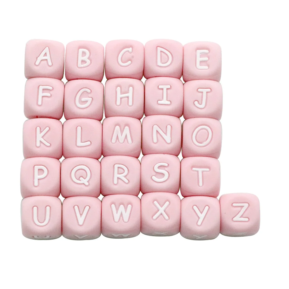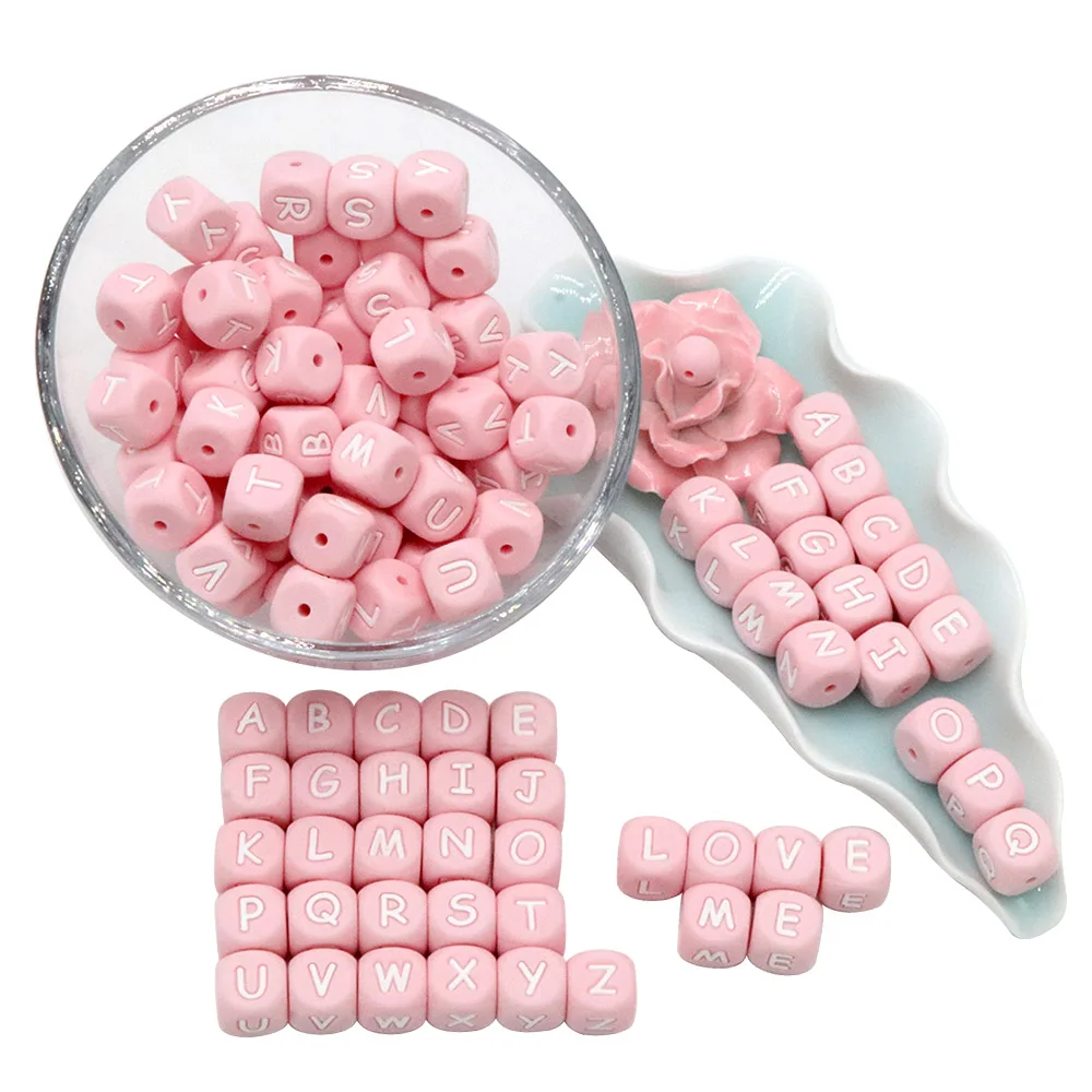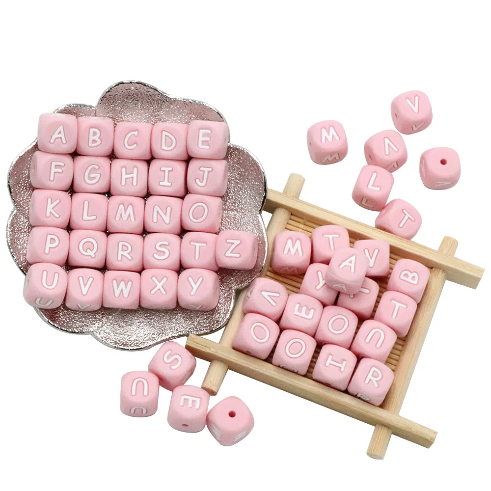 Joepada 10 шт./лот розовая силиконовая буква алфавита бусины DIY Детские Прорезыватели аксессуары для соски пищевого силикона Детские Прорезыватели