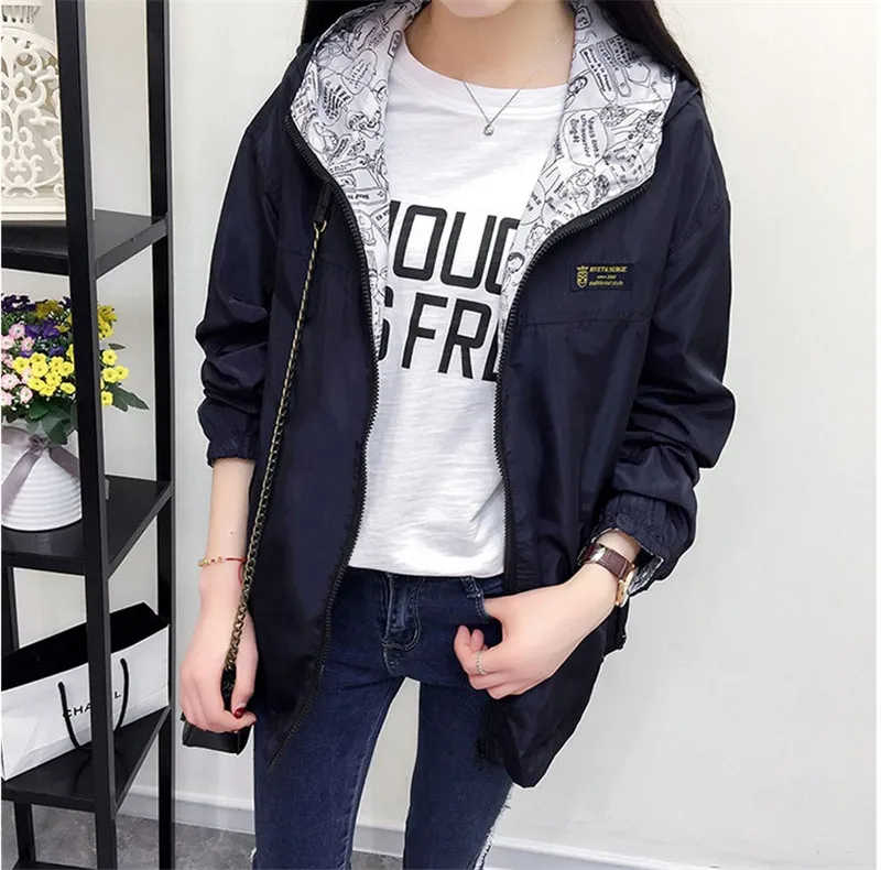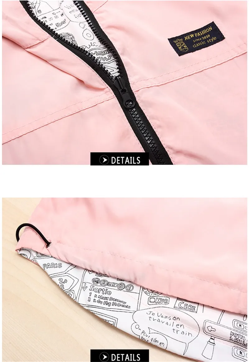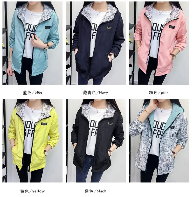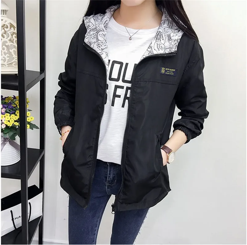 Сезон весна-осень; Модные женские ботинки-бомбер для женщин куртка с карманами; Куртка на молнии с капюшоном из двух частей возможность носить на обе стороны Верхняя одежда размера плюс ветровка Famale