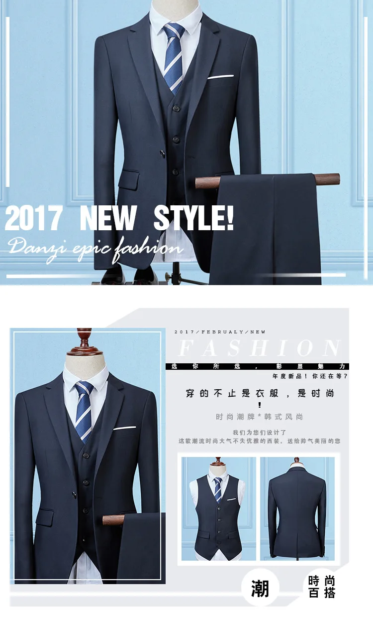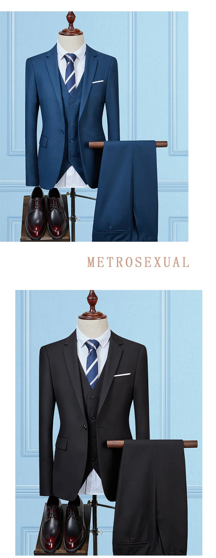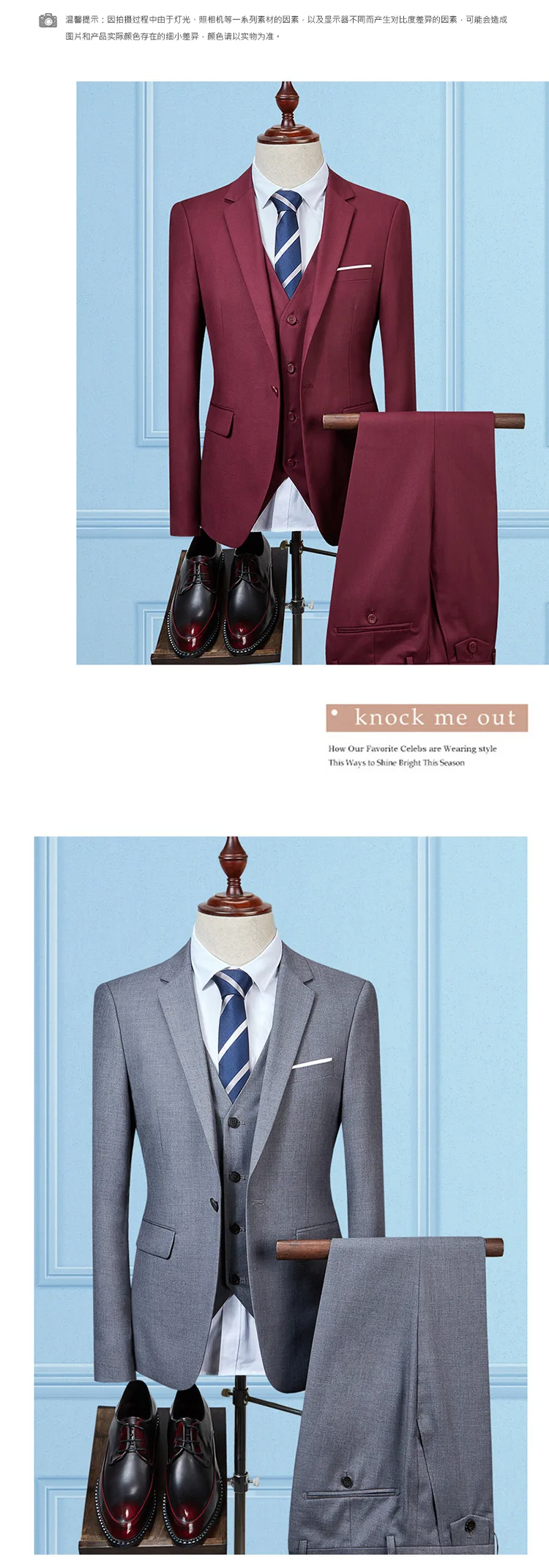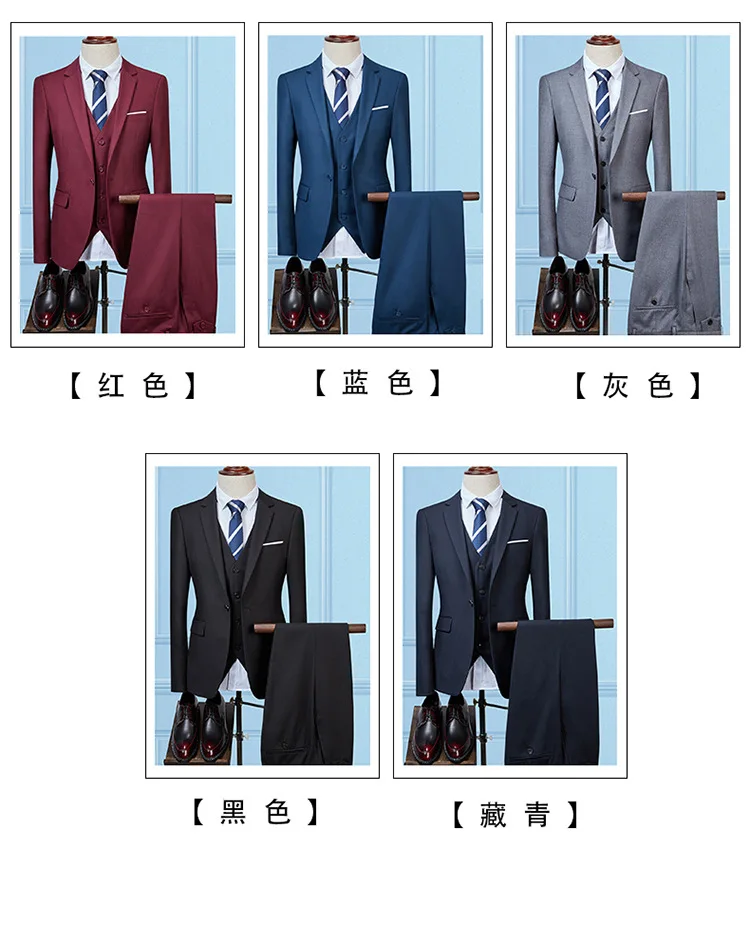Свадебное платье для жениха, пиджак, жилет, брюки, официальный костюм, комплект из 3 предметов, высококачественный однотонный повседневный деловой мужской костюм, S-5XL