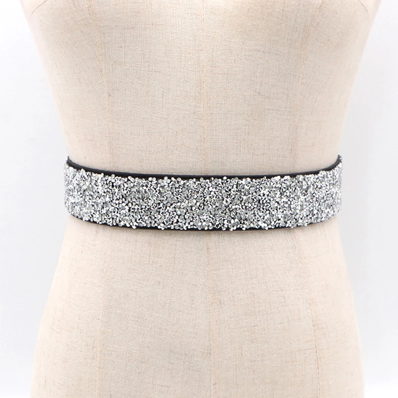 Ремень женский, блестящий, ручной работы, с инкрустацией стразы, эластичный, для платьев, пальто, рубашек, широкий пояс, 2020