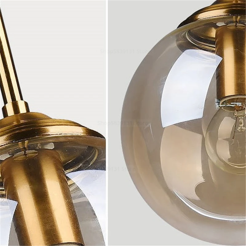 Современный подвесной светильник в скандинавском стиле с серыми стеклянными шарами, винтажная зеркальная лампа для спальни, декоративное освещение для гостиной, домашнее освещение