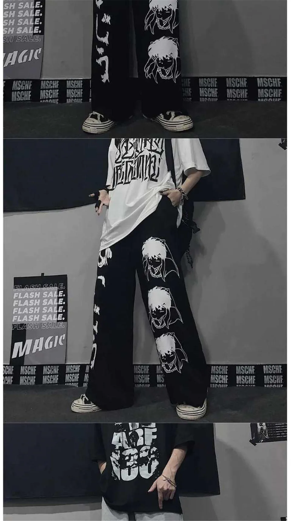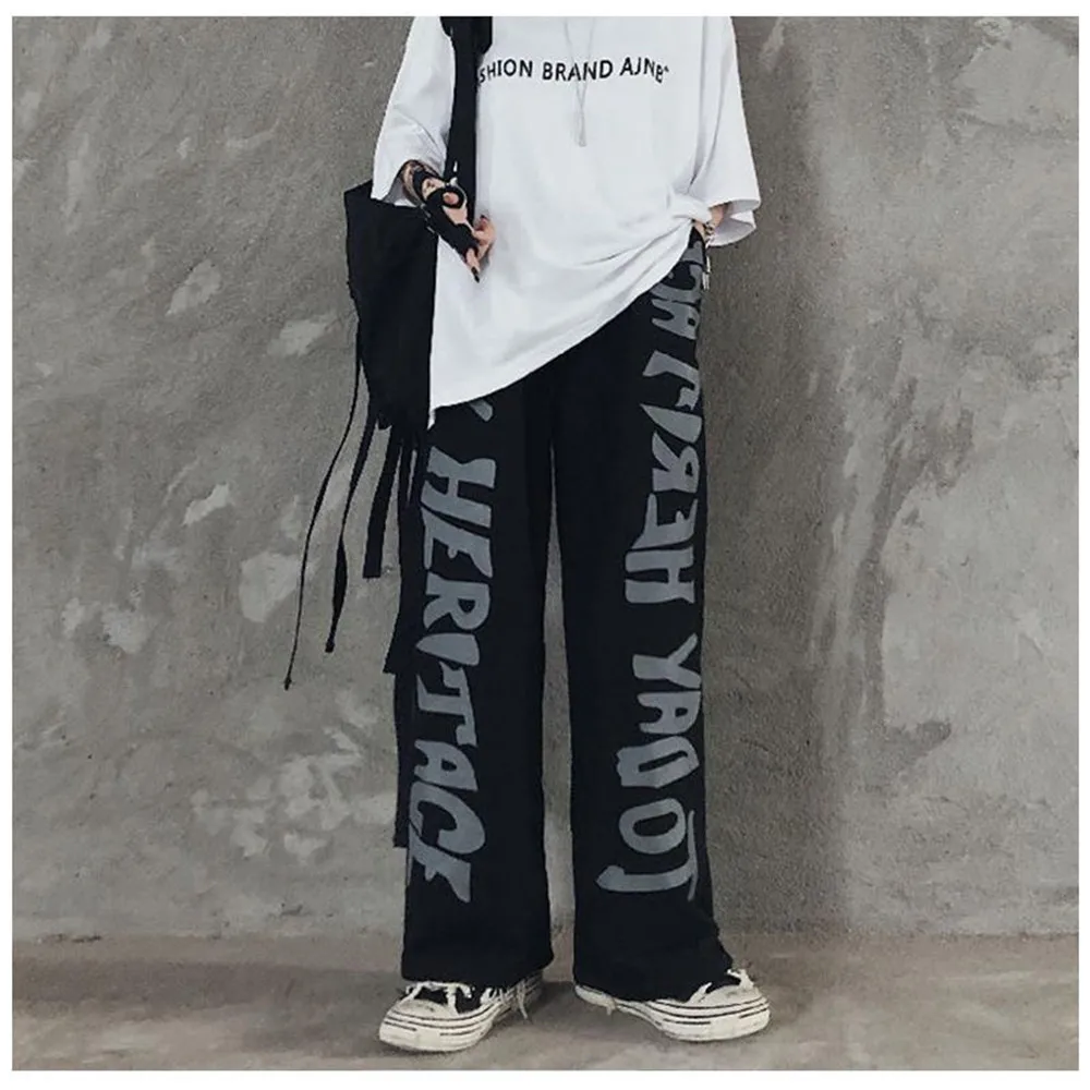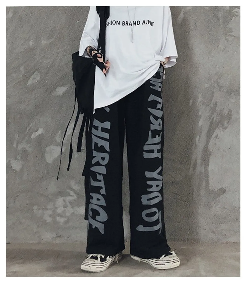 Брюки женские в готическом стиле, свободные прямые штаны в стиле Харадзюку, уличная одежда, модные штаны в стиле хип-хоп, черные, для девушек, лето-осень