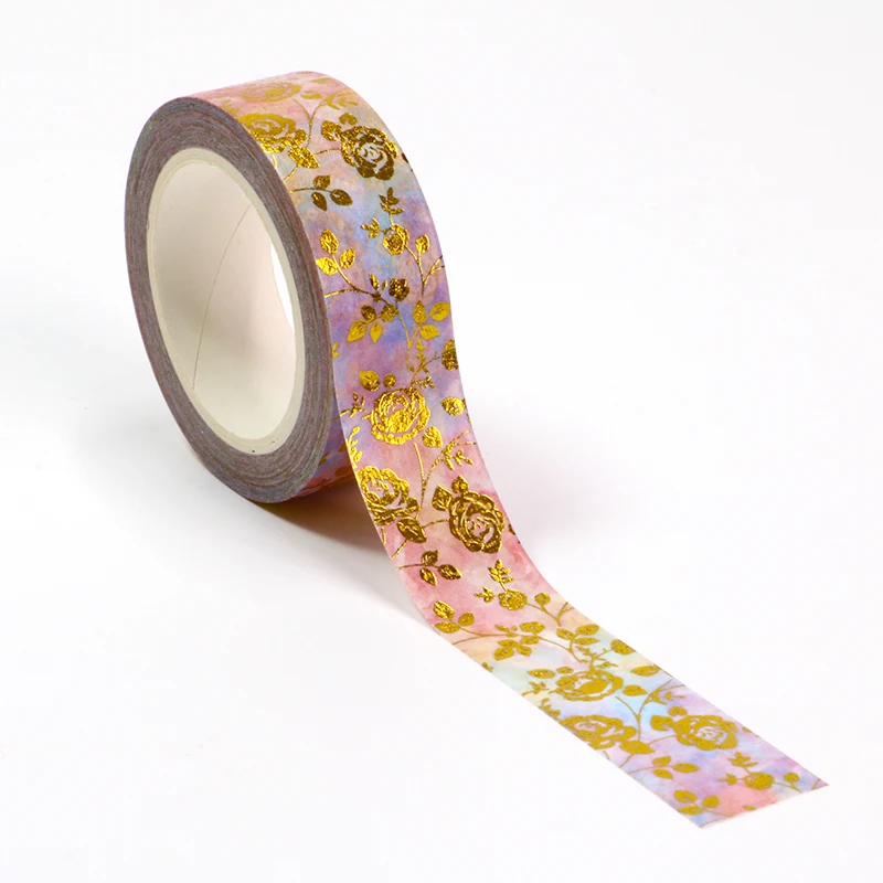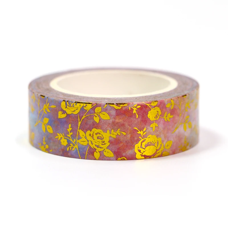 1 шт. 15 мм * 10 м Фольга; Сезон весна; Золотистые, розовые цветы декоративная лента Washi DIY Скрапбукинг малярный скотч Школа канцелярских товаров