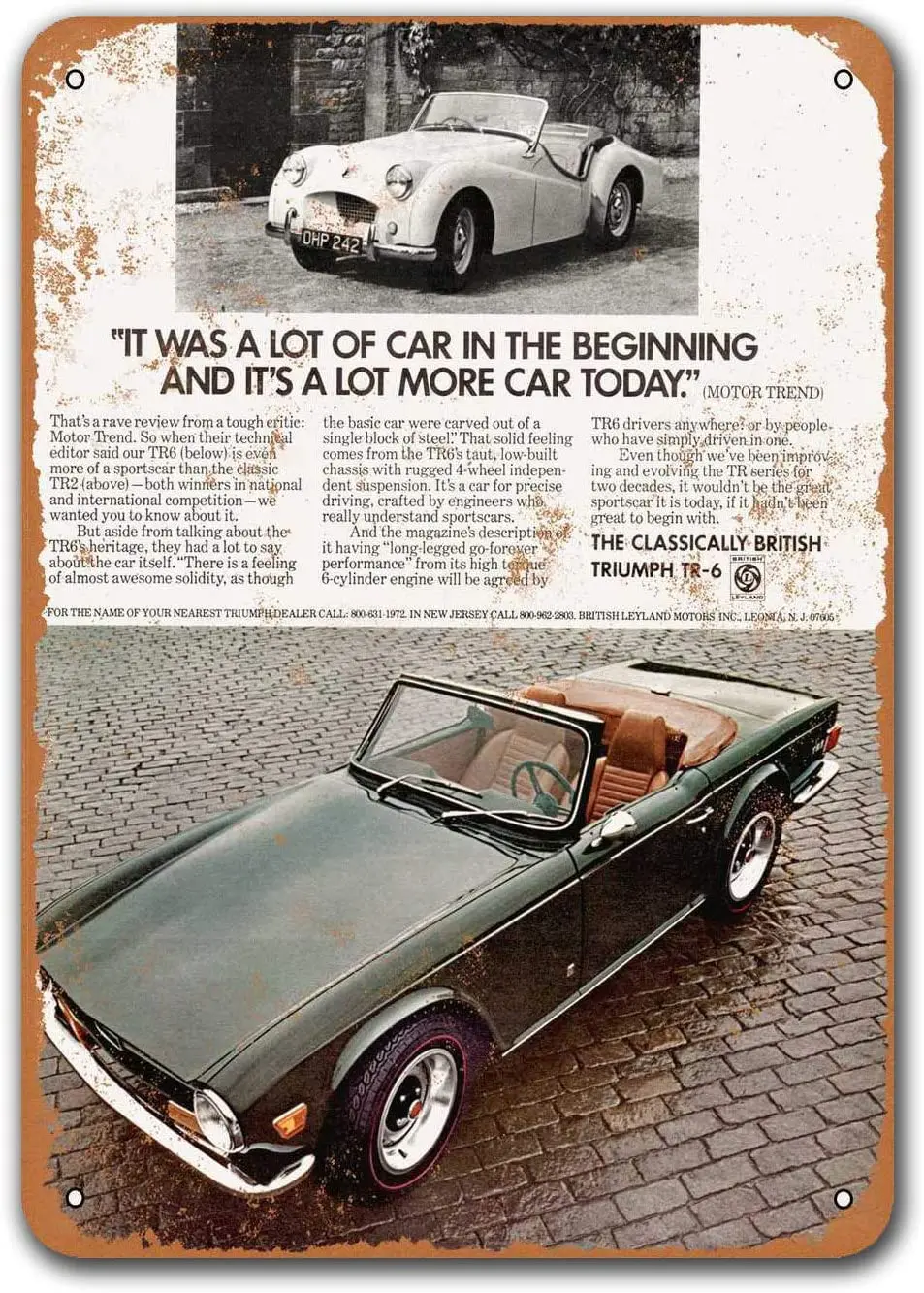 1972 Triumph TR-6 автомобильные жестяные знаки в винтажном стиле, металлические таблички Sisoso, мужской Настенный декор в стиле ретро, 8x12 дюймов