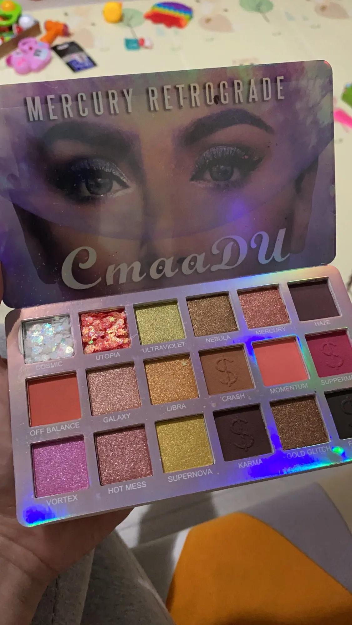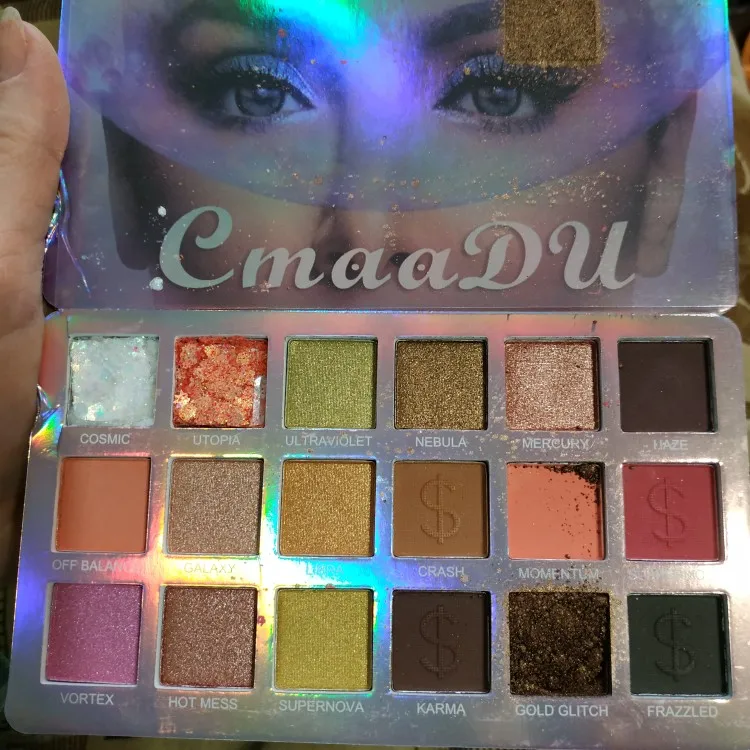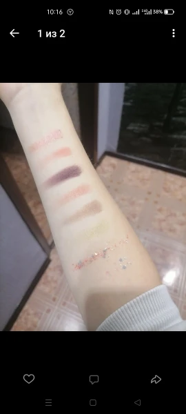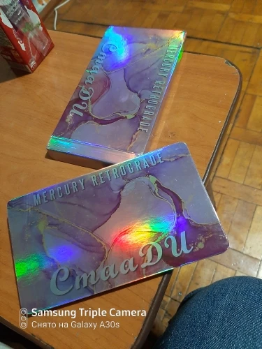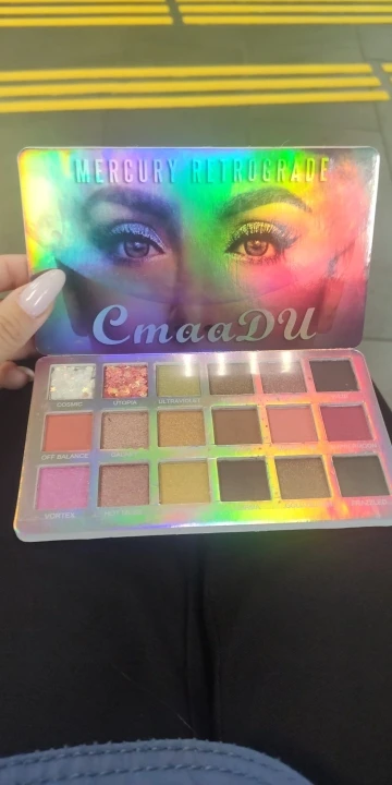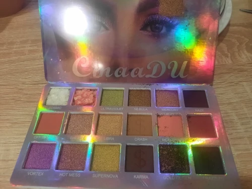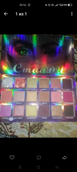 Палетка пришла целая, ничего не рассыпалось, была пленка на тенях, сама упаковка голографическая, вся переливается. Тени шикарные, все цвета топовые, особенно блестящие, тушуются хорошо. На подарок идеально. Продавец отправил быстро, к покупке рекомендую!
