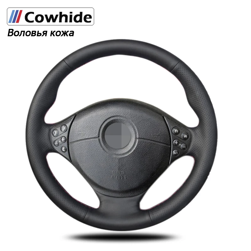 Чехлы на руль для BMW E39 5 серии 1999-2003 E46 3 серии 1999-2005 E53 X5 E36 Z3, черные, из натуральной кожи