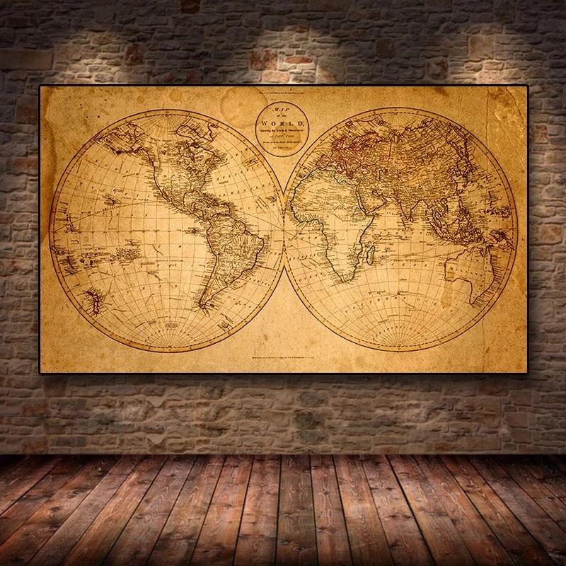 Винтажная Карта Города мира, холст, плакаты и принты, старые картин...