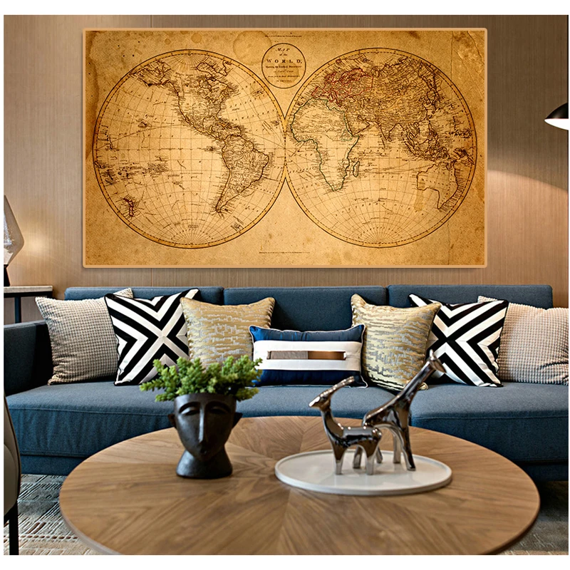 Винтажная Картина на холсте с изображением карты мира, абстрактные картины, глобальные плакаты и принты, Настенная картина для гостиной, домашний декор