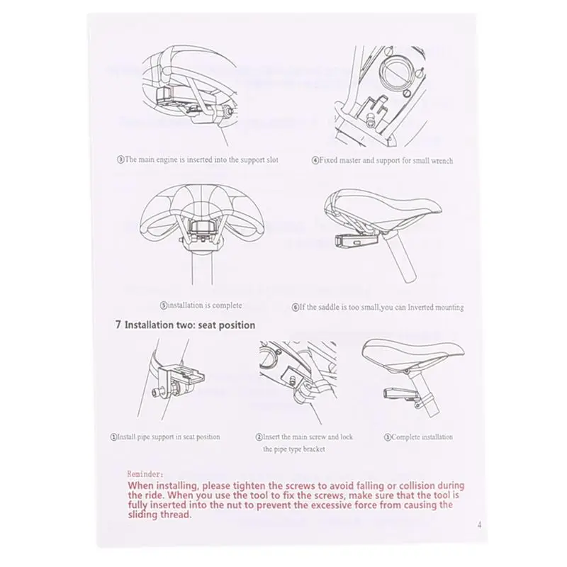 Функция беспроводного дверного звонка: светодиодный дверной звонок/COB светильник, 120 дБ ringtone четкий и яркий, COB светильник, передний и задний, предназначен для защиты вас и других напоминаний одновременно. В дополнение к любому велотренажеру, будет длинное предупреждение, если вы продолжите использовать велосипед, он издаст плохой сигнал тревоги, чтобы отпугнуть вора.